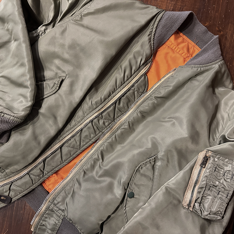 | 2026/4/8 Alpha Industries USAF MA-1 Flight Jacket 8279E 70s Ideal Zip White Tape Small Mintをアップいたしました。 アルファインダストリーズコントラクトの70s 8279E USAF MA-1 フライトジャケットが入荷です。 最終期の8279Eは以前のスペックよりもかなり中綿がライトウェイトになり後のシビリアンへの系譜となるモデル、66ナイロンツイルは当時らしいくすんだ光沢感でジッパーはビンテージIDEALバタフライのホワイトテープ仕様でジャケットの良いアクセントとなっています、とにかく歴代のMA-1でもおすすめしたいスペック、状態も極めて貴重なミント品、ほぼ一から自分の一着に育てていただける個体です。 |