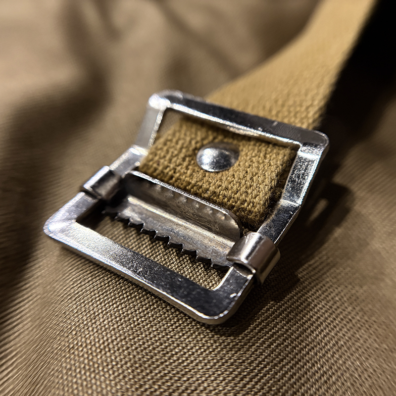 インナー側にはウエストベルトが備わっており、腰部での多くの収納時に保持できるような機能となっており、しっかりとした厚手のコットンベルトにメタルバックルが付属した細部にわたってもラギットな作りが魅力となっています。