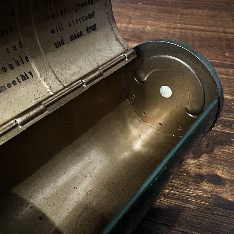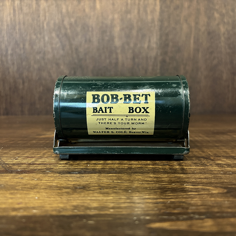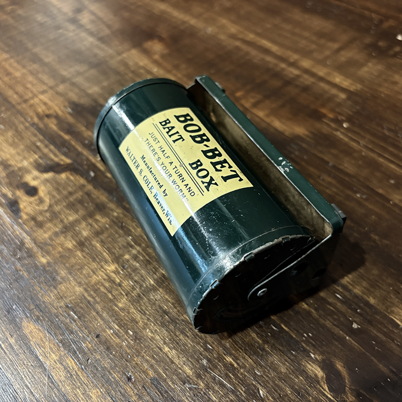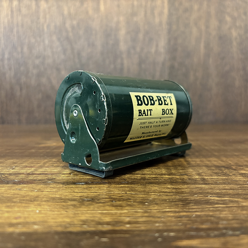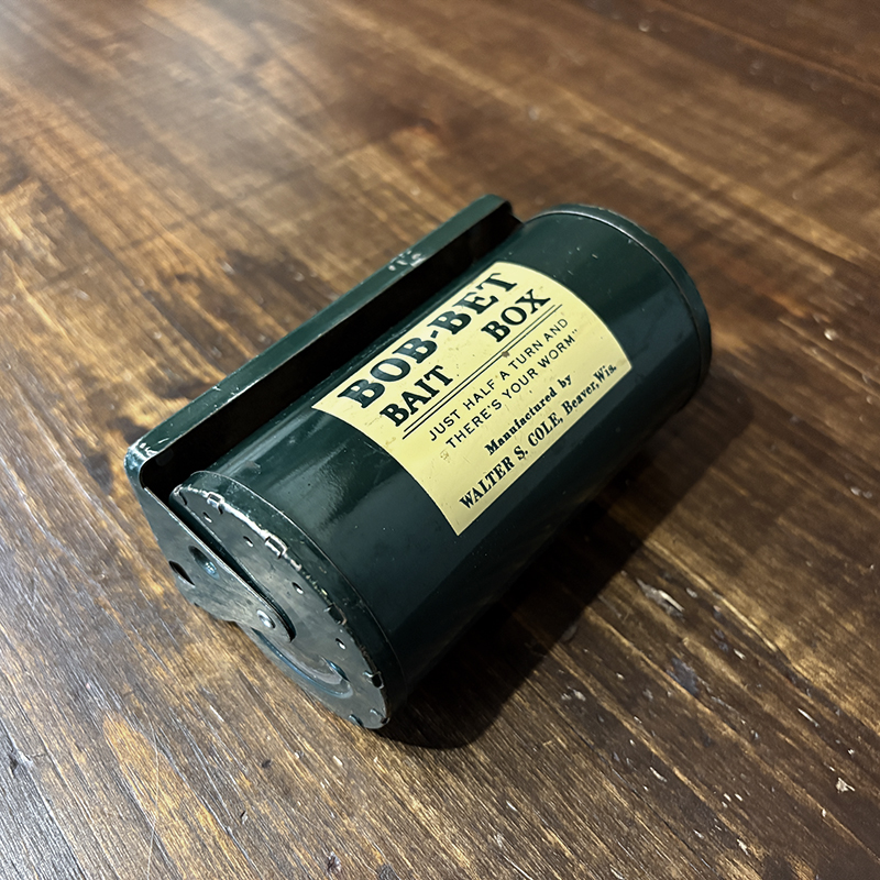フィッシングツールとしても珍しいビンテージのベイトボックス、回転式の独特の機構とデザインがなかなか面白い一品です、餌釣りももちろんですが、小型のルアーやバスバグなどを忍ばせて陸っぱりに興じるのも面白そうです、是非ご検討ください。