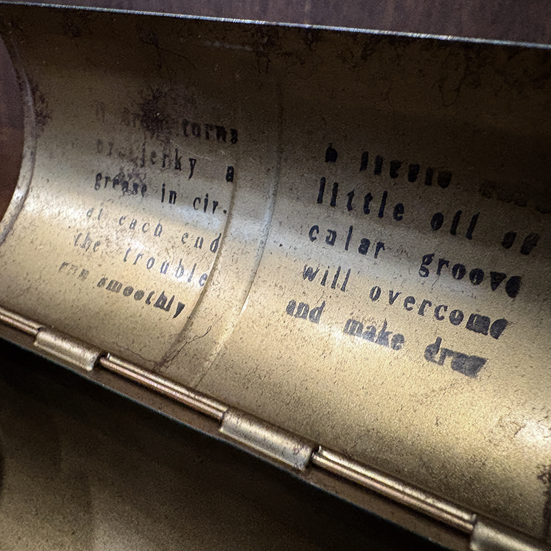 本体フロントにはBob-Betロゴなどのレタリングがデザインされており、蓋の裏側にもケアインストラクションがステンシルされるなど、当時の道具らしいアメリカンな印象が良い道具といったところです。