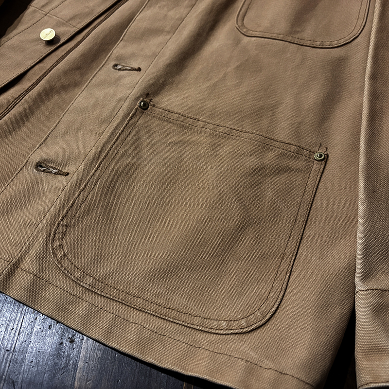 また本個体は希少なインナーブランケットの無いダックキャンバスのみのカバーオールスタイルのモデルとなっており、着用した際の軽快且つすっきりとしたシルエットにもつながる長いシーズンで着回しが効くモデルとなっています。