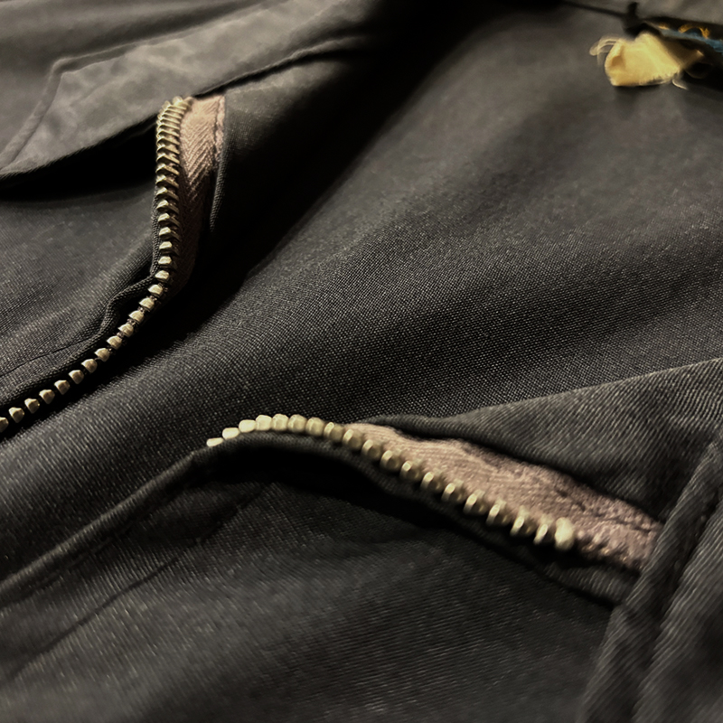 胸元には当時のレタープリントでCM表記がレタードされており、ベースはシックなダークネイビーとなっており、この手のスイングトップとしては端正なカラー構成となっています。