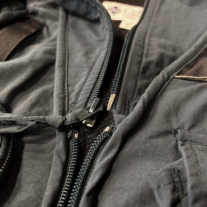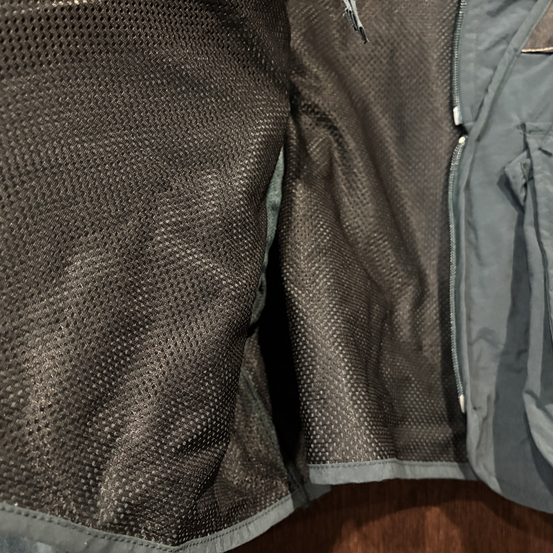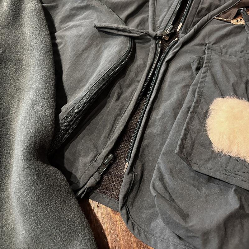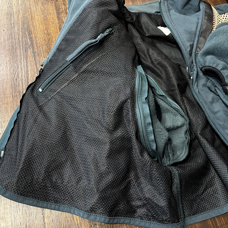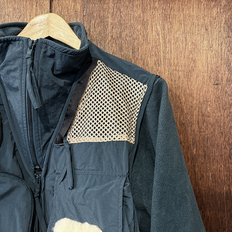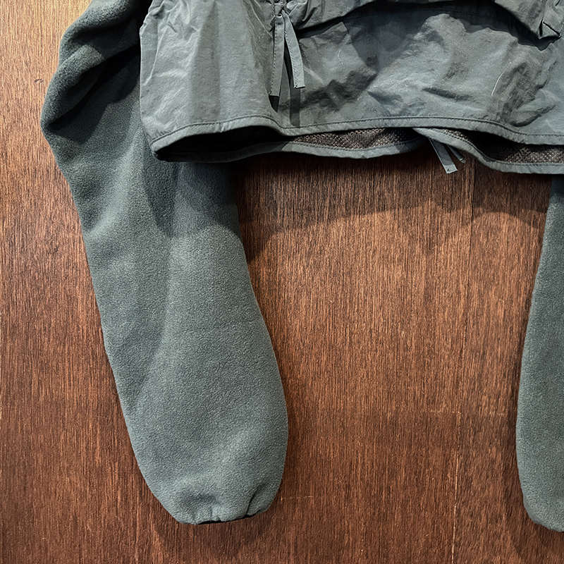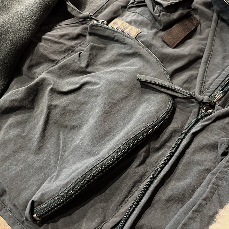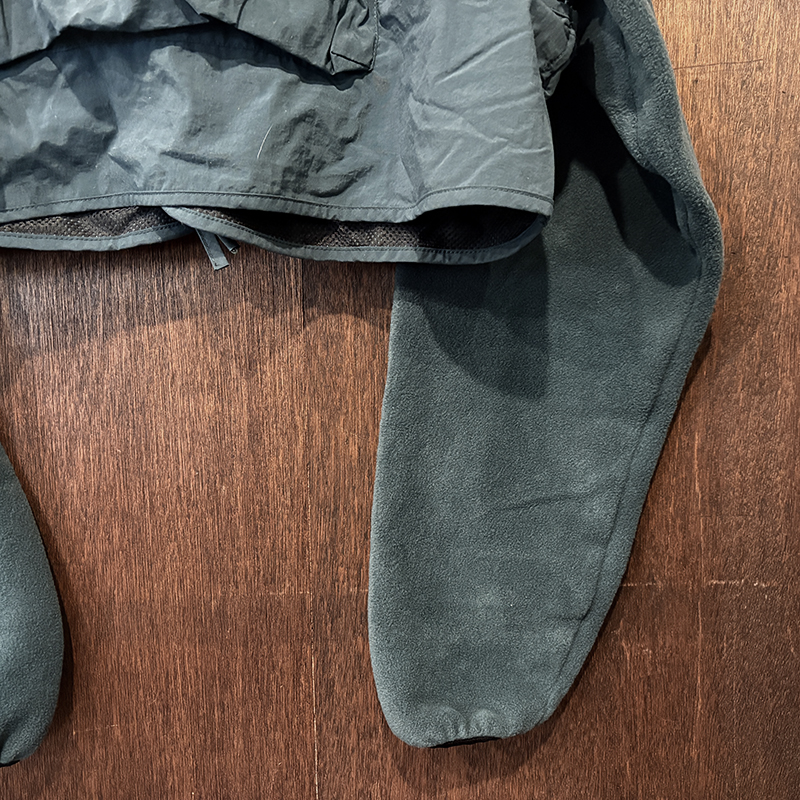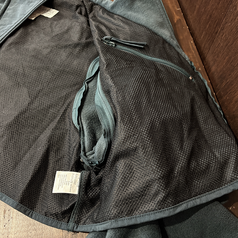 状態は経年のわずかな使用とほぼ展示保管による軽度な皺や微細な擦れ、僅かなくすみが見られますが、画像からご覧いただけるようにナイロン生地から各部のジッパーはじめポケット周り、フリーススリーブも非常にクリーンでトータルでも非常に使用感が浅く極めて良好な状態を維持したミントコンディションの一着となっています。