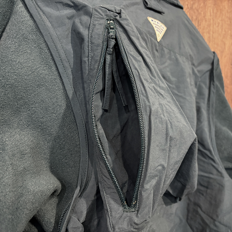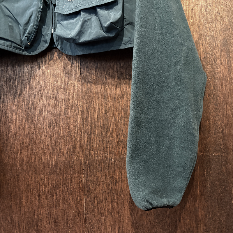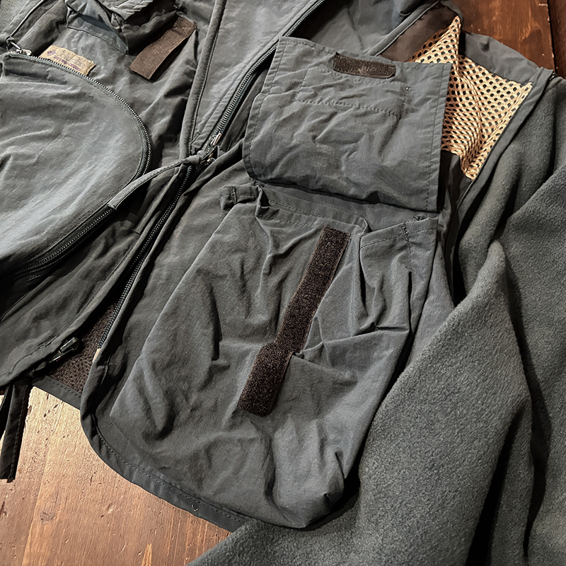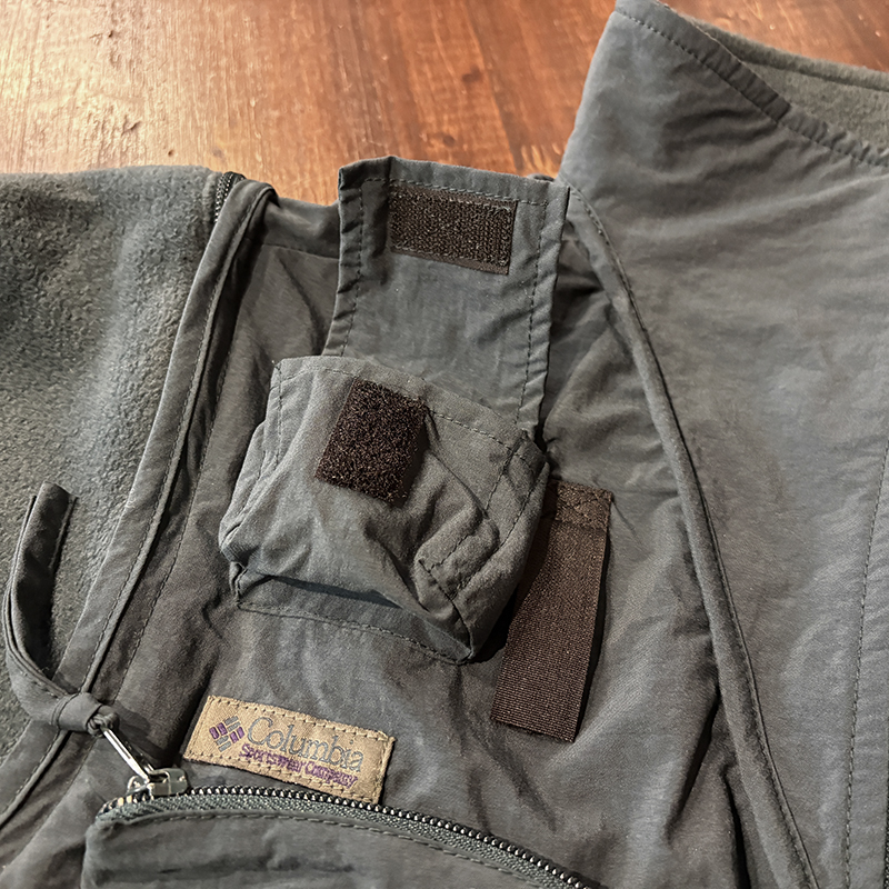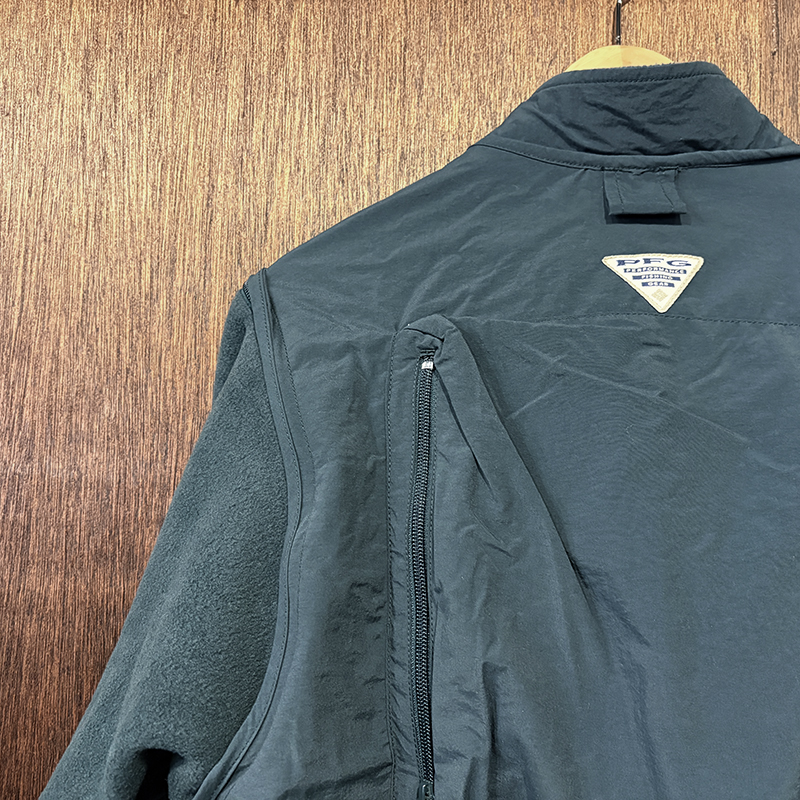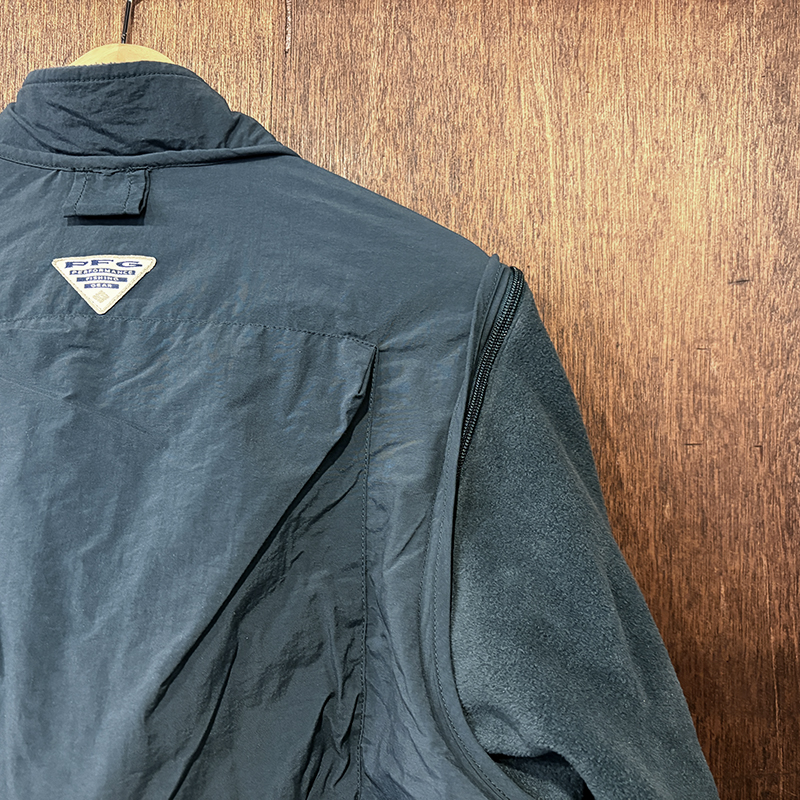 本品はコロンビアのボディがナイロンシェルで袖がフリースの取り外し可能な仕様のデタッチャブル2wayフィッシングベストジャケット、袖を外すとショートレングスベストとして使用でき、フリーススリーブを取り付けるとベストジャケットとして機能する汎用性の高い珍しい仕様の一着です。