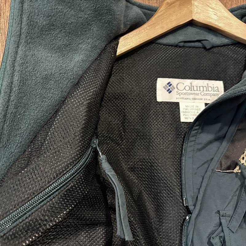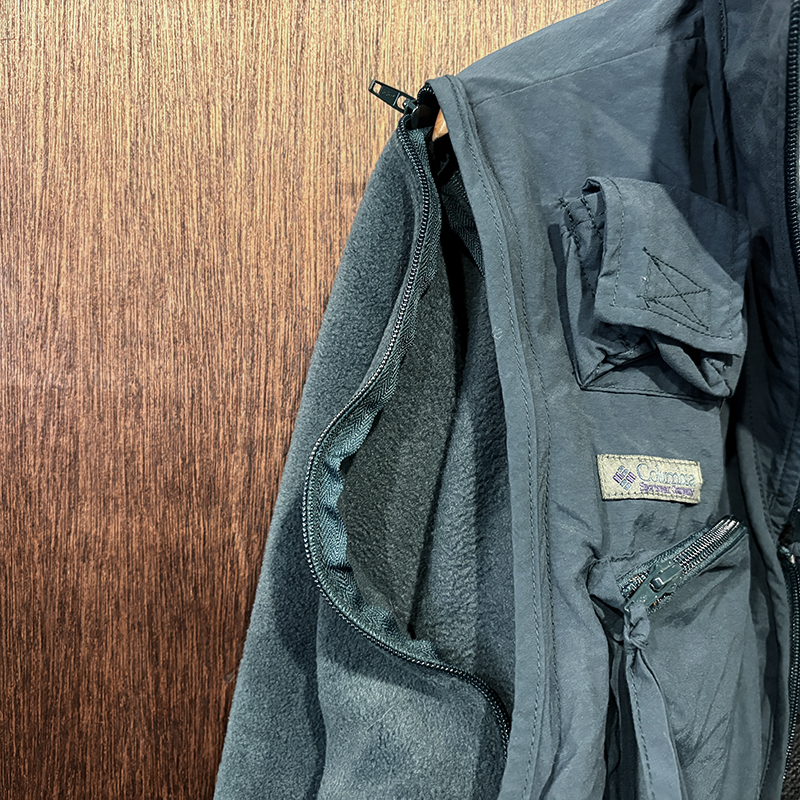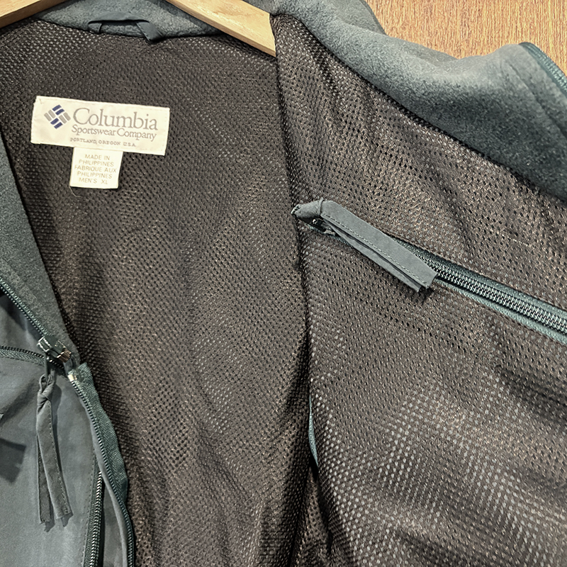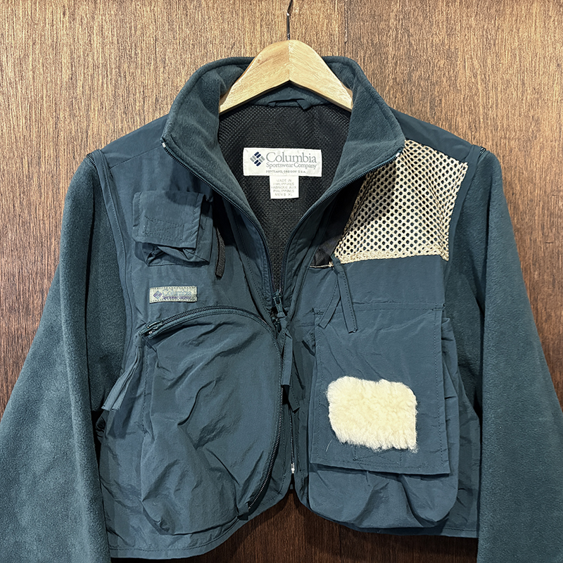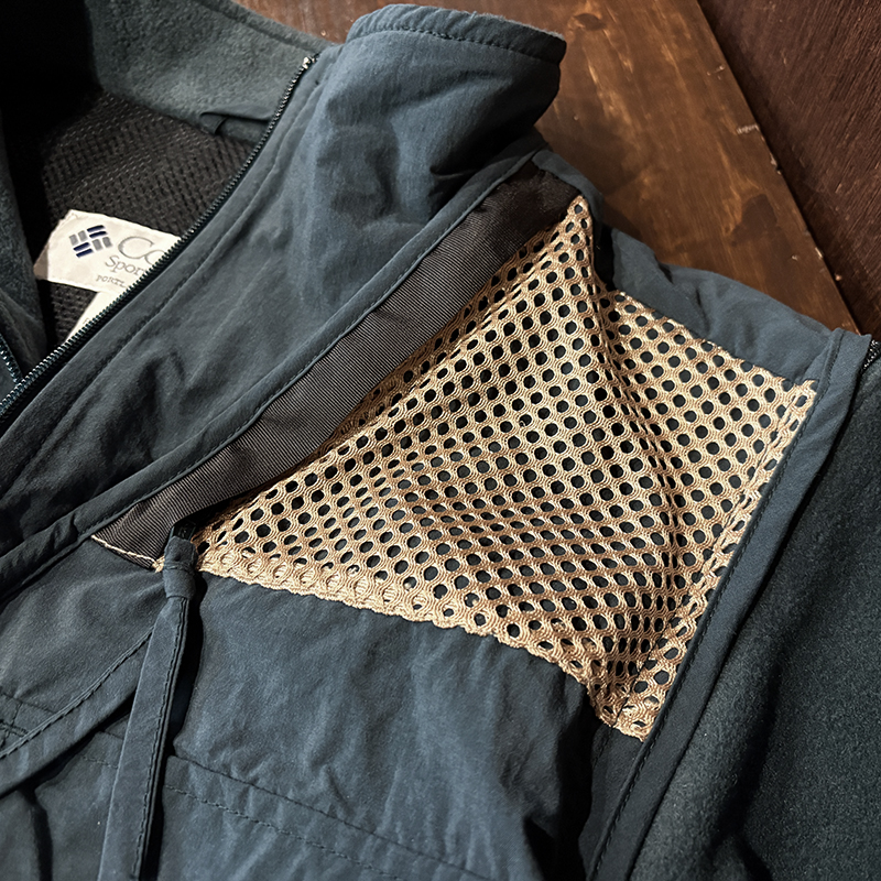 大変希少な仕様のコロンビアスポーツウェア デタッチャブルフィッシングベストジャケット、ウェーディング仕様のショート丈でフリーススリーブの脱着やベストの独特のジッパー使いなど個性的な非常に希少なスペックの一着です、フライフィッシング、ルアー、バスフローター等、あらゆるフィッシングシーンに、是非ご検討ください。