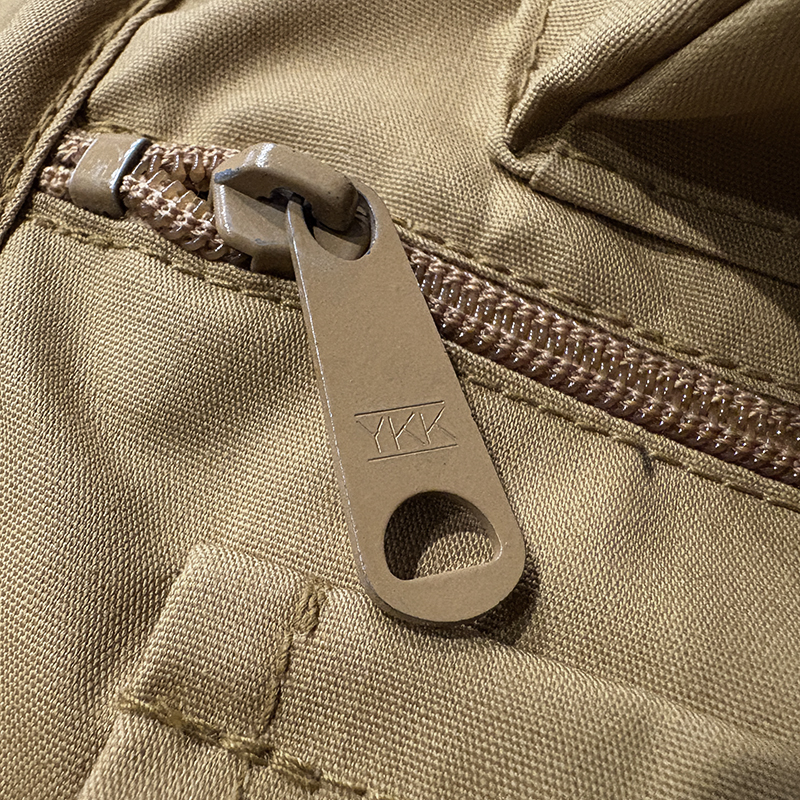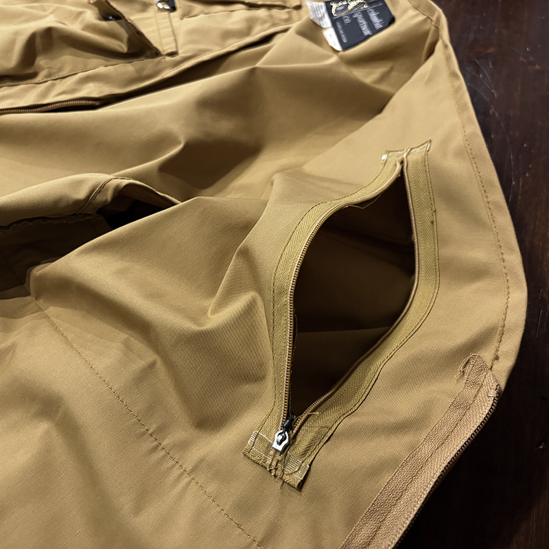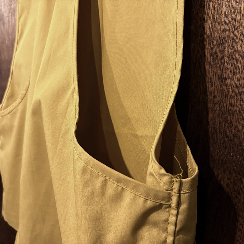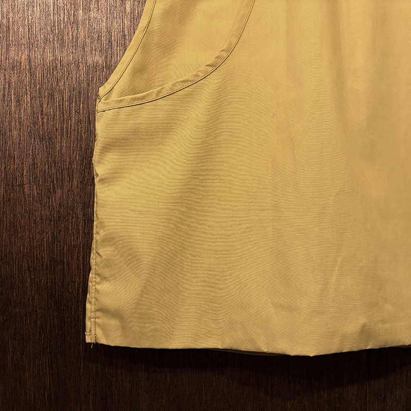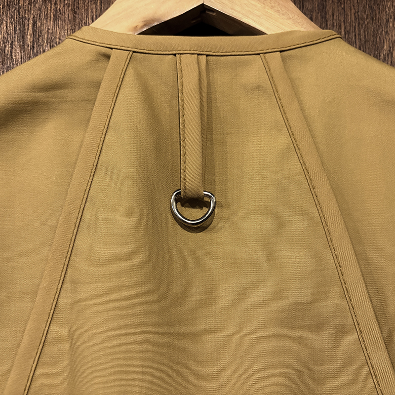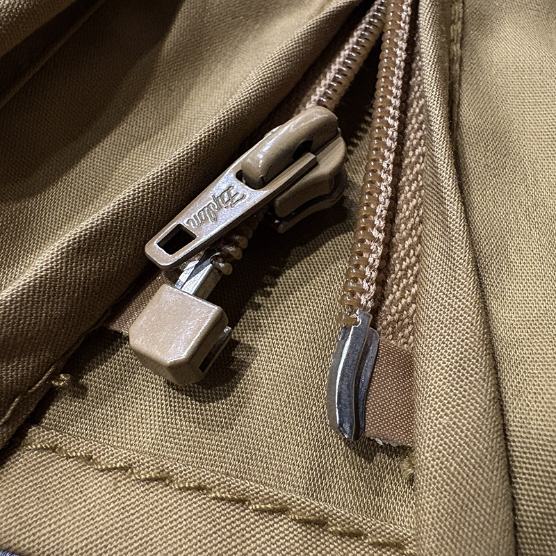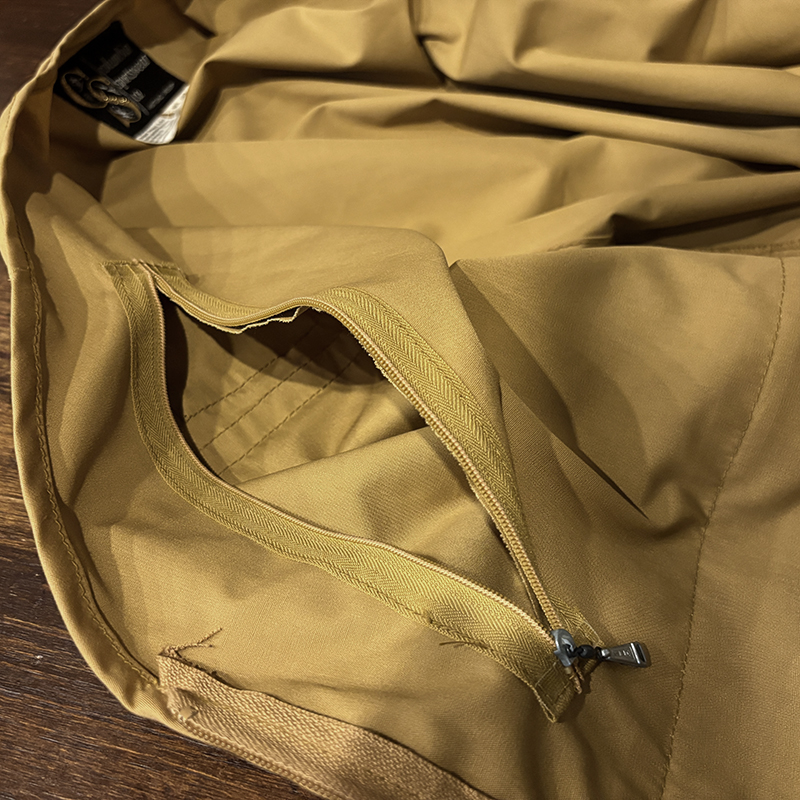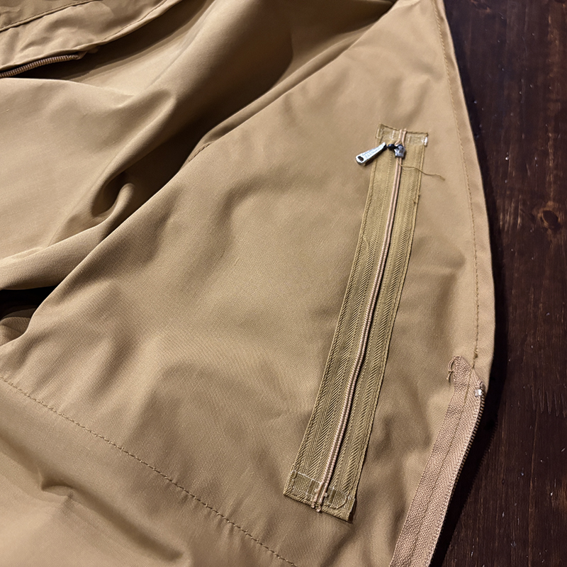 フロントのチェストポケットには個性的な同社らしさが出た当時オリジナルのトラウトワッペンが縫い付けられており、ポケットフラップ箇所にはムートンのフライドライヤーパッチ、アクセサリーツールホルダーDリング、バック側にはクラシカルなネットリリーサーDリング、ジッパーなどもティアドロップ型であったりと、当時のフィッシングベストとしての良いディテールが備わった一着です。
