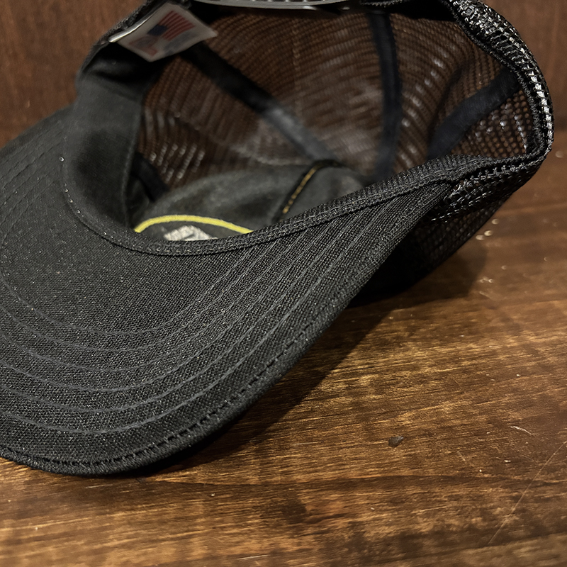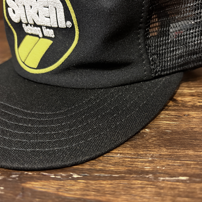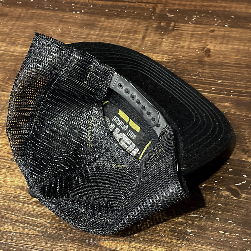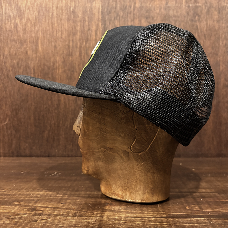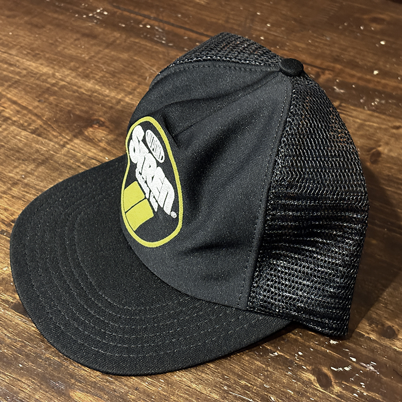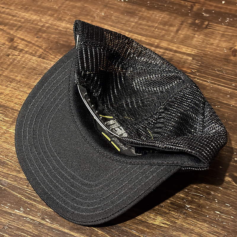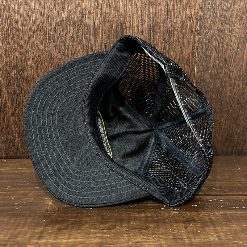 本品はStrenの当時のクラウンフロントのイエロー(ゴールド)がアクセントのロゴフロッキーが意匠されたいわゆる同社定番ラインカラー、キャップベースはブラックナイロンメッシュ仕様のツートーンカラーのフィッシングキャップです。