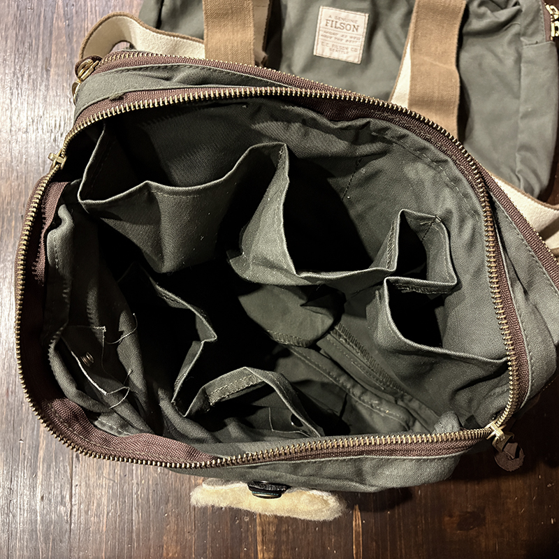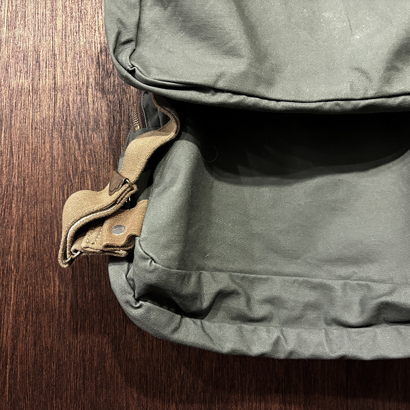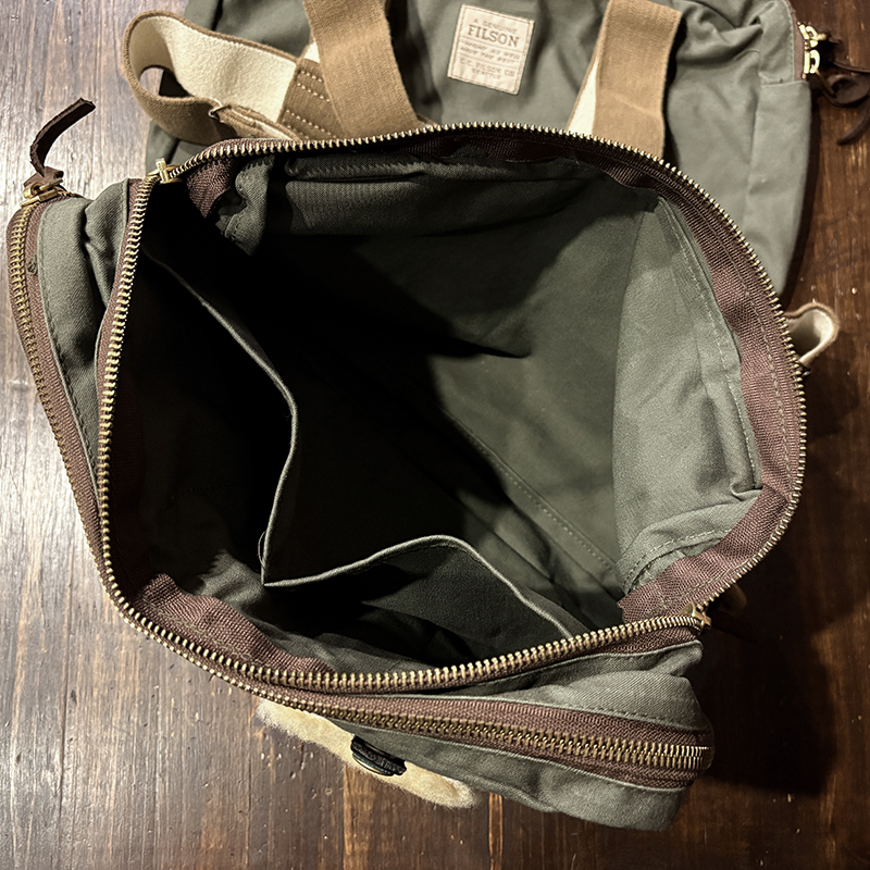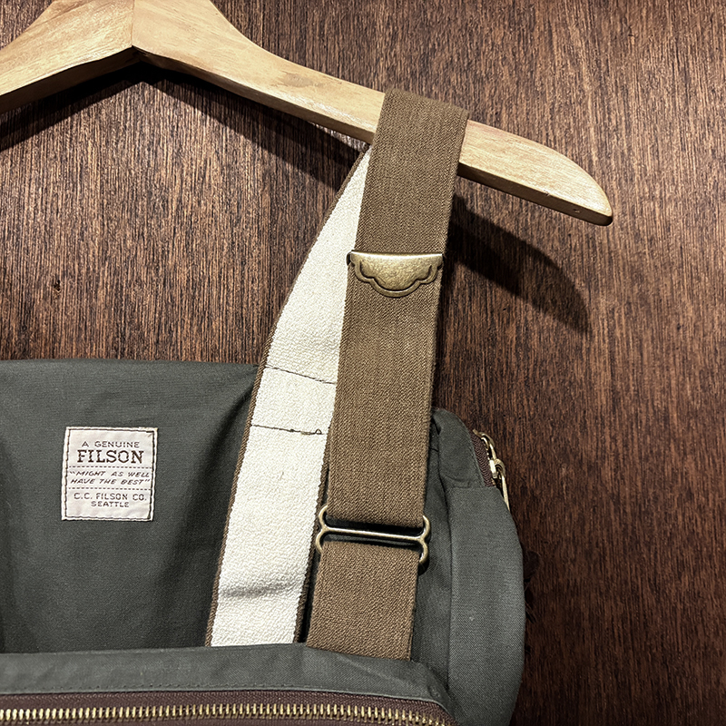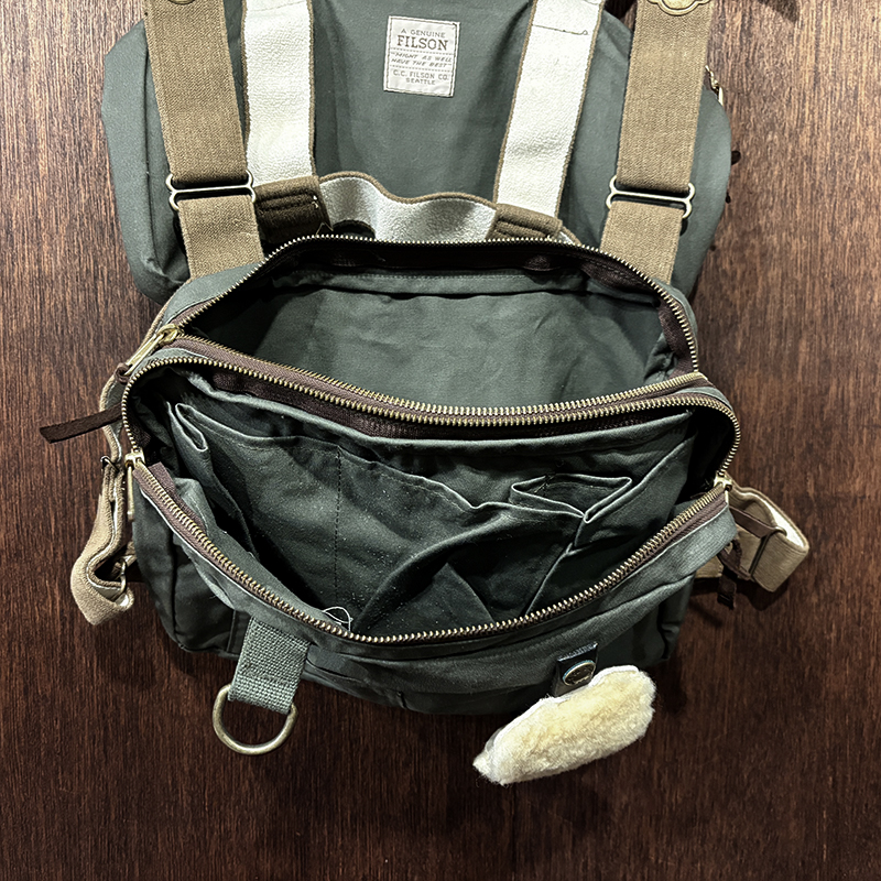 素材はフィルソンらしい堅牢なドライフィニッシュのコットンクロスがベースに設定されており、各部のパーツも同じく丈夫なコットンベルトを使用する等、アウトドアフィッシングに対応させた堅牢性を持ち合わせています。