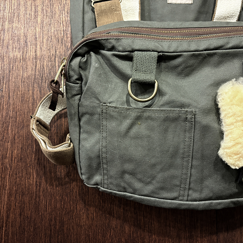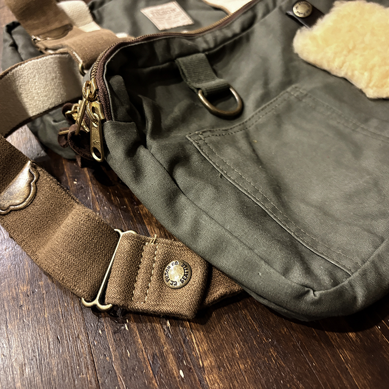 ショルダーストラップはビンテージモデルの特長であるブラスストッパーパーツによって自在に長さを調節出来、前方のチェストバッグ内部は仕切りが多くあるため、ティペットはじめフライボックスやその他の細かなツールなど様々な小物を仕分けできる構造となっており、フライは勿論ですがルアーフィッシング等にも対応できる汎用性ある設計となっています。