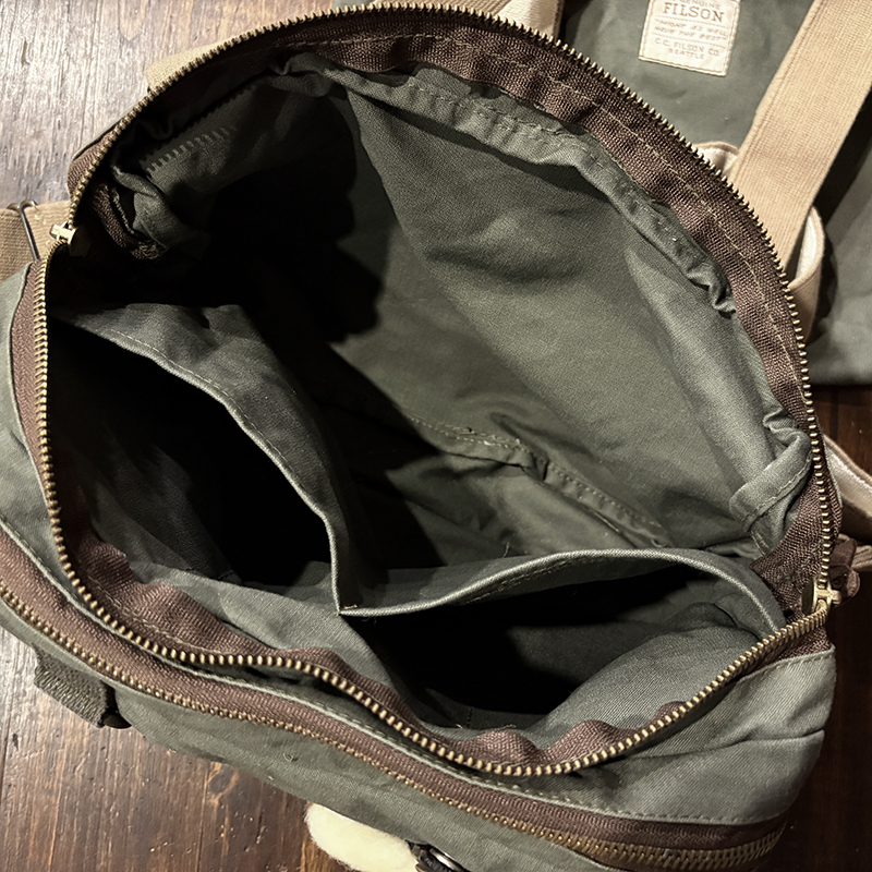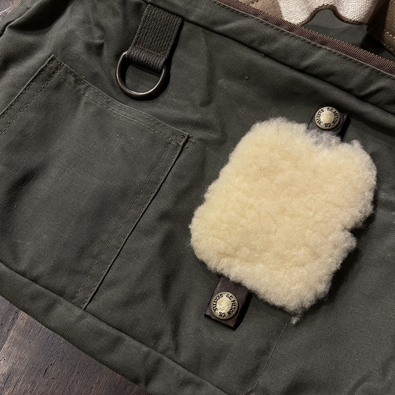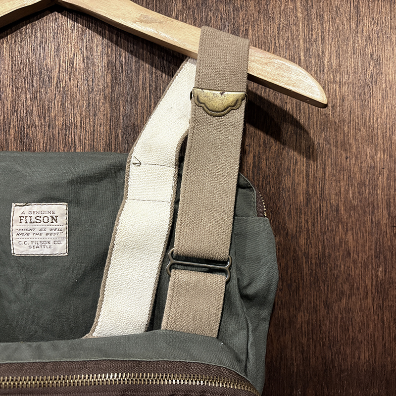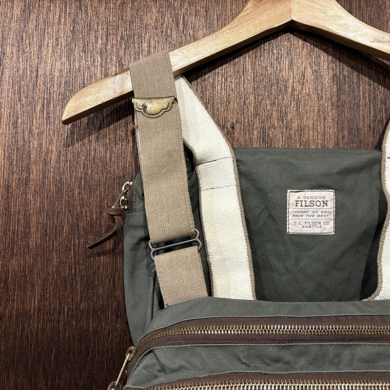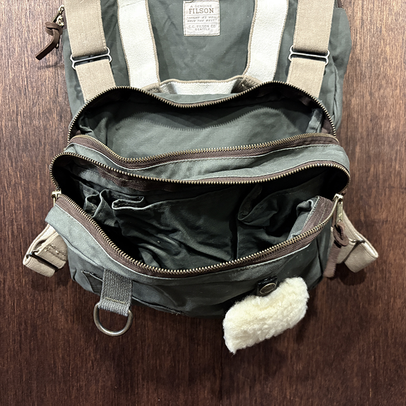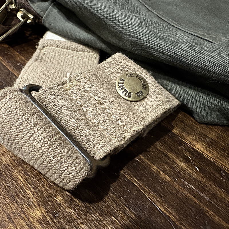 素材はフィルソンらしい堅牢なドライフィニッシュのコットンクロスがベースに設定されており、各部のパーツも同じく丈夫なコットンベルトを使用する等、アウトドアフィッシングに対応させた堅牢性を持ち合わせています。