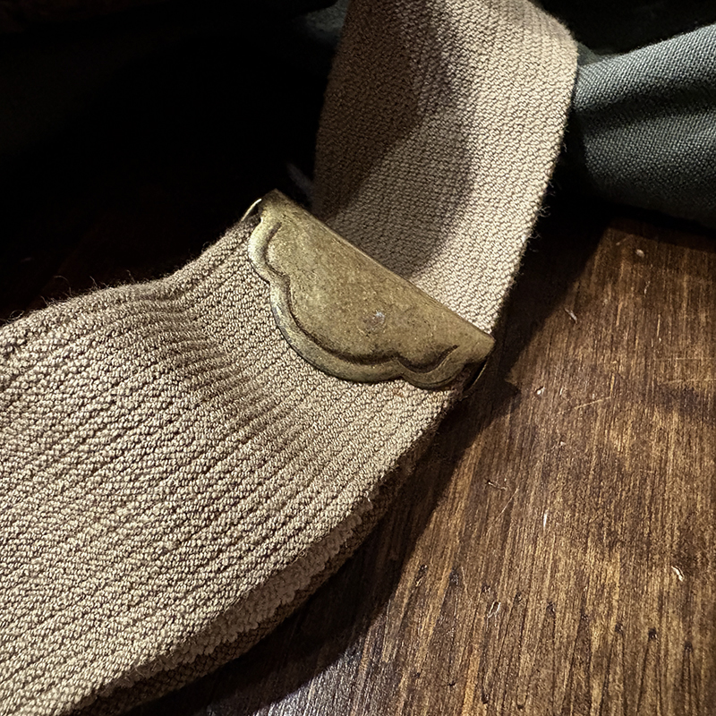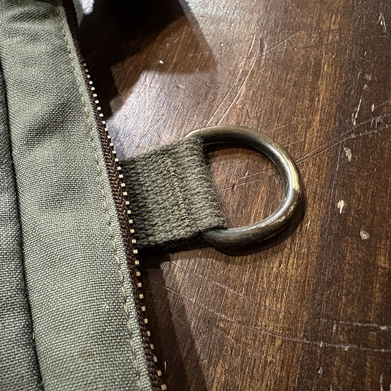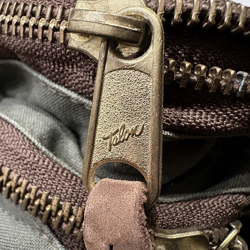 このタックルパックベストは旧モデルのビンテージ独特のデザインでストラップやポケットの配置等後年のディティールとは素材も含めデザインも異なり、特にジッパーは当時採用されてたブラウンテープ仕様の筆記体Talonのジップとなっています。