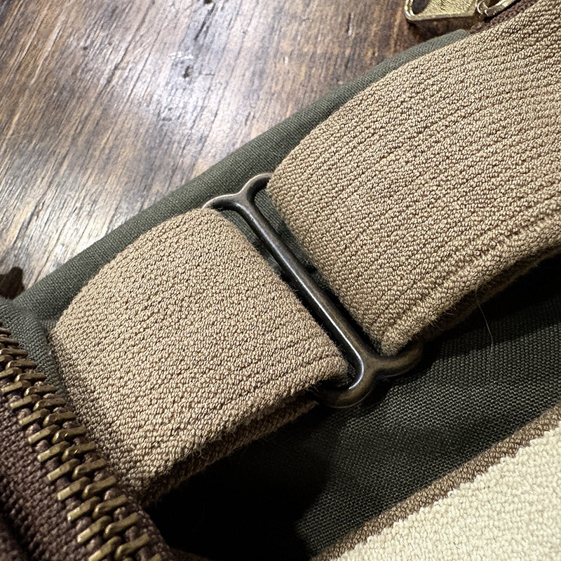 ショルダーストラップはビンテージモデルの特長であるブラスストッパーパーツによって自在に長さを調節出来、前方のチェストバッグ内部は仕切りが多くあるため、ティペットはじめフライボックスやその他の細かなツールなど様々な小物を仕分けできる構造となっており、フライは勿論ですがルアーフィッシング等にも対応できる汎用性ある設計となっています。