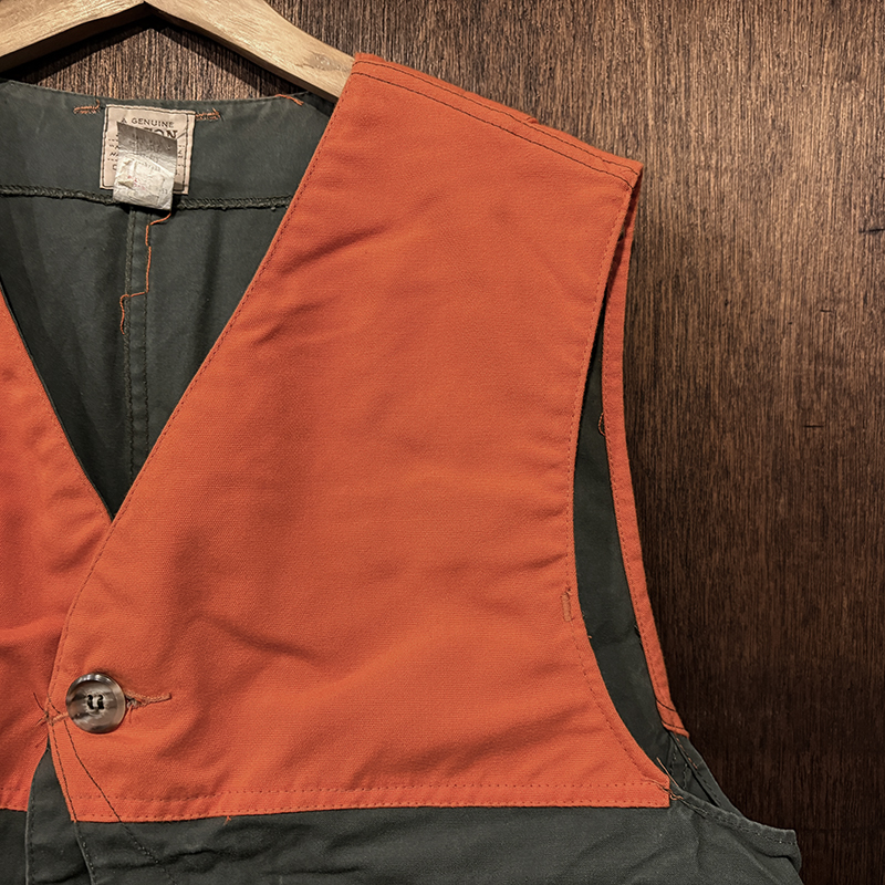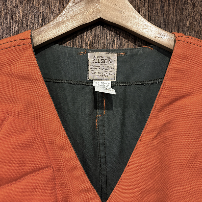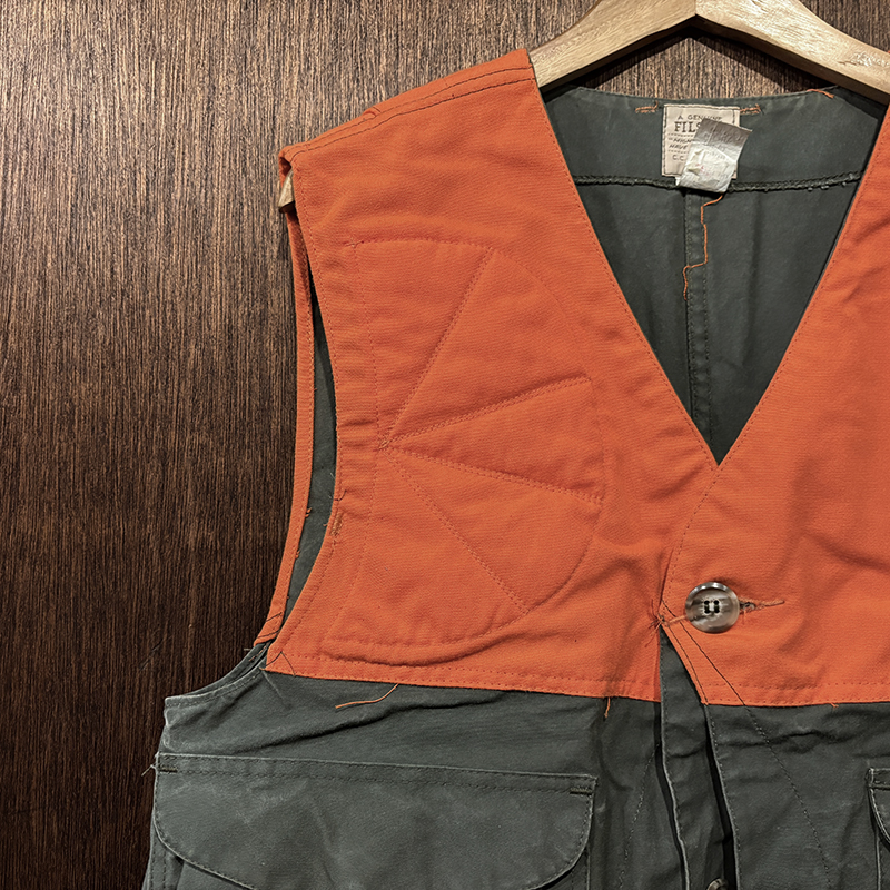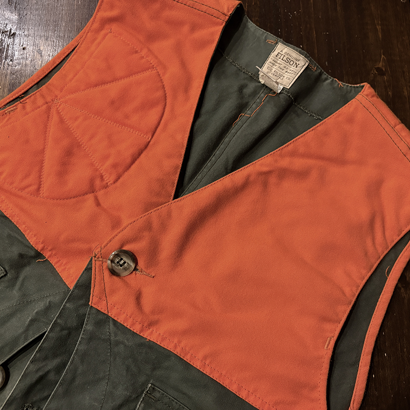Filson Heavy Cotton Cloth Dry Wax Finish Half Moon Upland Hunting Vest L Mint フィルソン ヘビー コットンクロス ドライワックス フィニッシュ アップランド ハンティング ベスト オリーブドラブ ブレイズオレンジ ビンテージ オールドモデル Made in USA オリジナル ミントコンディション のご紹介です。