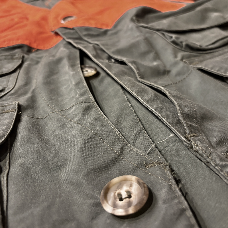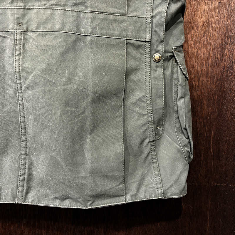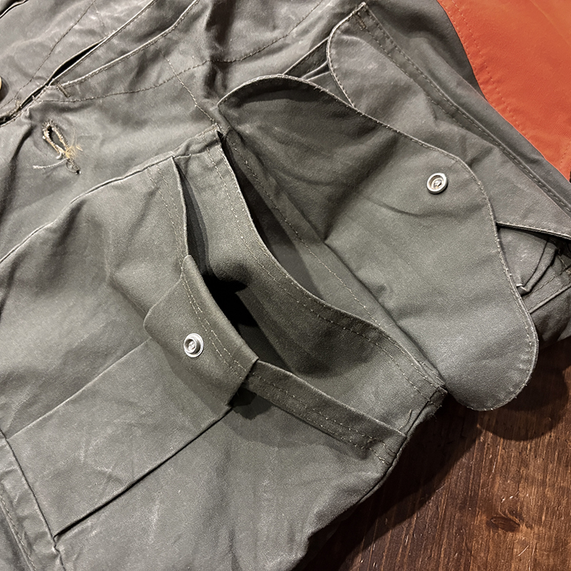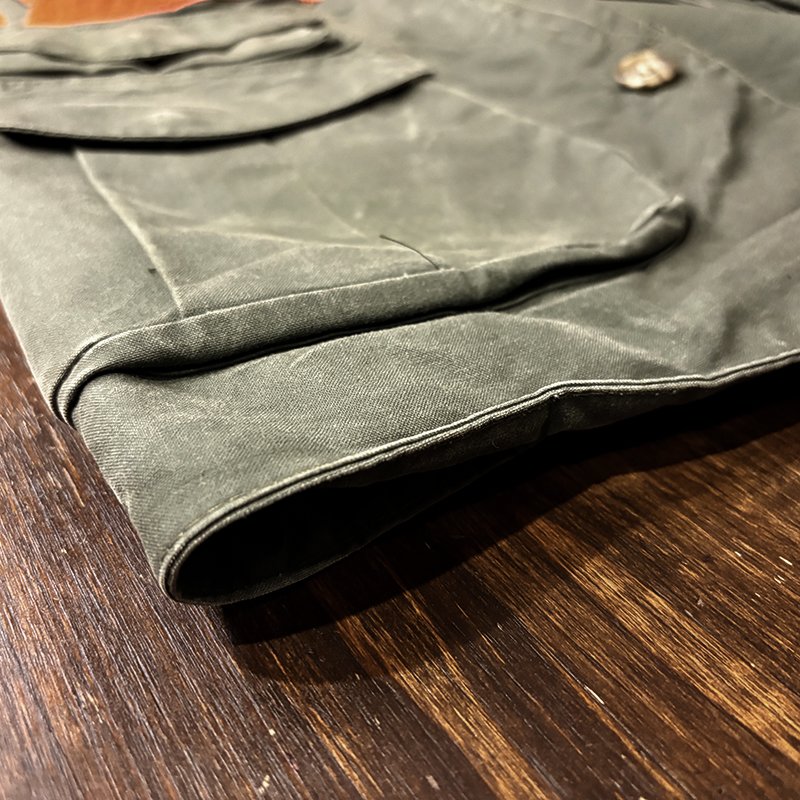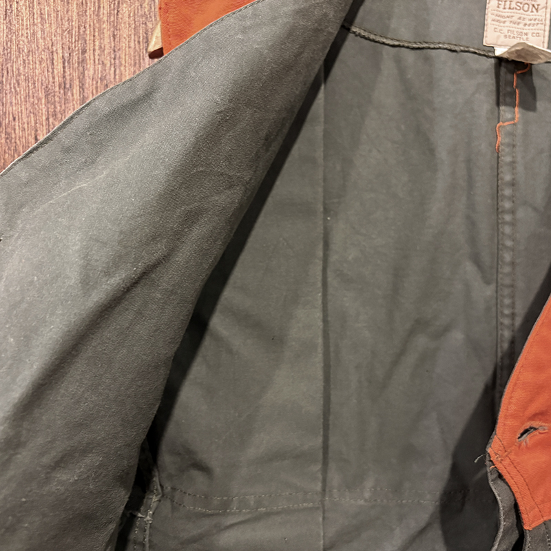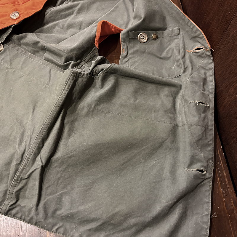 状態は、経年の軽度な使用と保管による生地の擦れやくすみ、特有のムラ感やシワこそありますが、画像のように極めて保管状態も良く、生地の肉厚な質感が保たれており非常に良好で各部のボタンやホック類、インナー側、ブレイズオレンジの色味も極めてクリーンで鮮明な、オールドフィルソンではありますが大変貴重なミントコンディションとなっています。