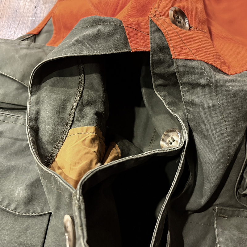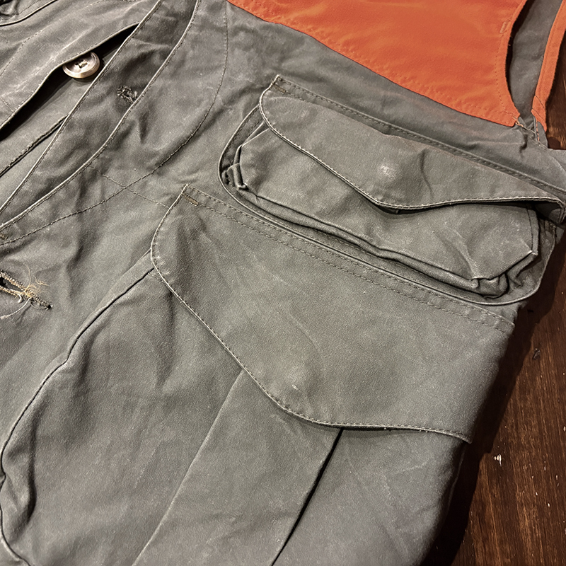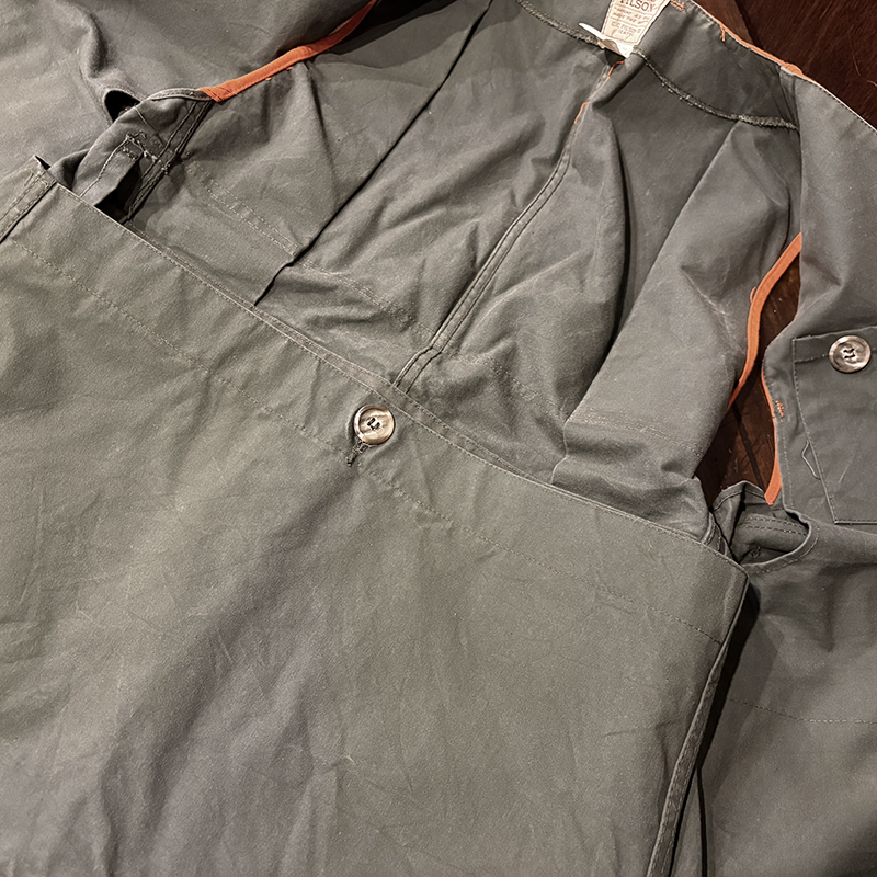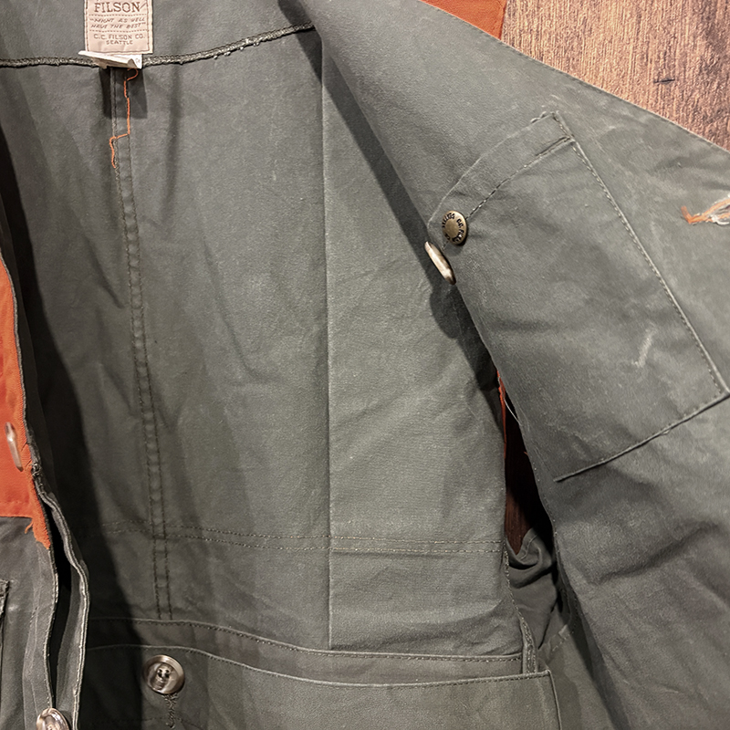 Filsonらしい本格的なブレイズオレンジ×オリーブドラブの2トーンオールドアップランドハンティングジャケット、ハーフムーンポケットやバレットホルダー、ゲームポケットなどなど収納力も非常に高くオールドタグの付く現代のモデルとは質感が全く異なるスペックです、ハンティングシーンはもちろんのこと、あらゆるアウトドア、キャンピング、タウンユースにも、是非ご検討ください。