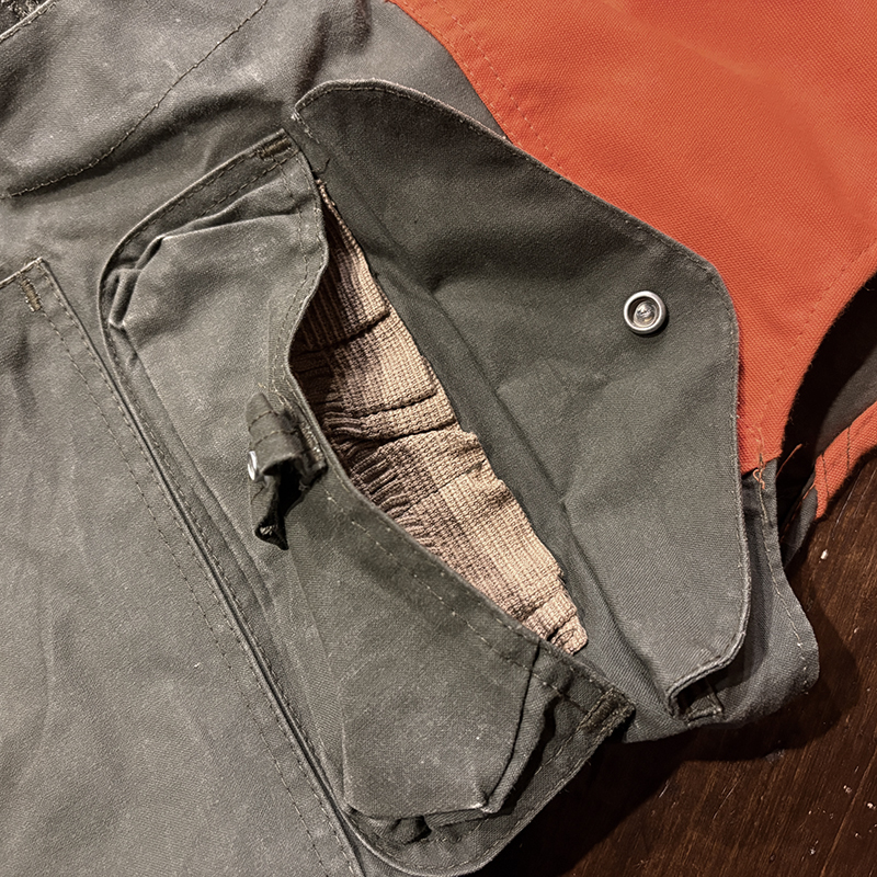 インナー側にもウェストを覆うように大きなゲームポケットが腰を覆うように設定されており、内ポケットもあるなど、大変収納性に長けた本格仕様となっています。