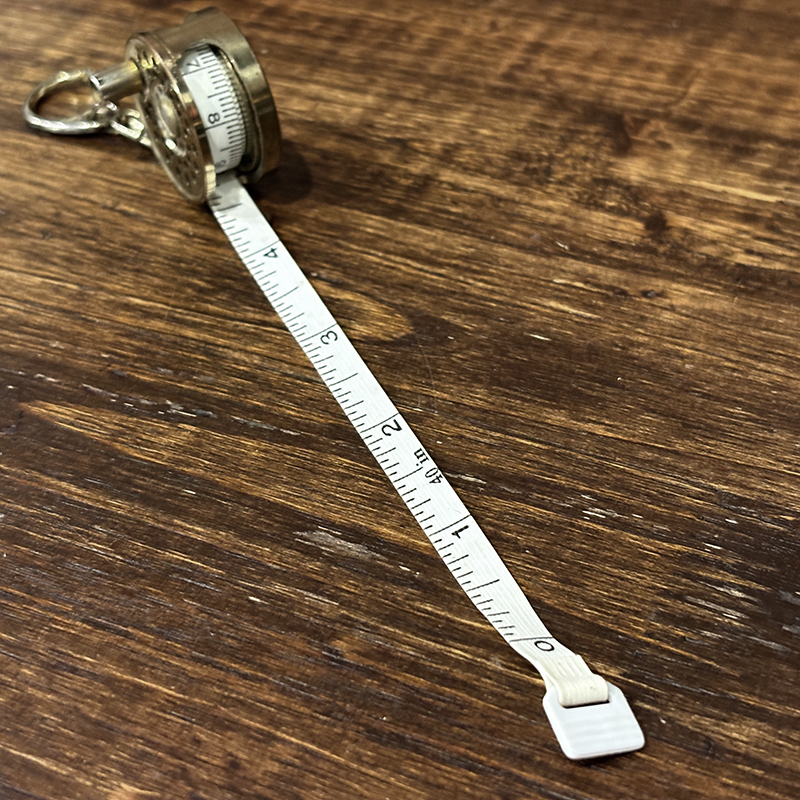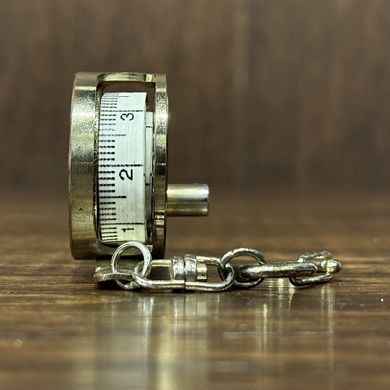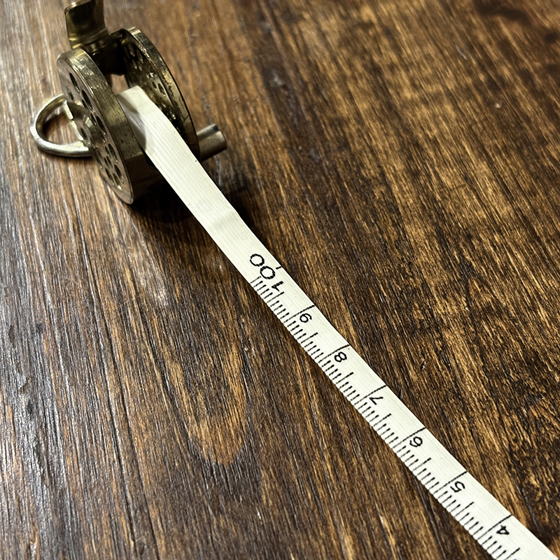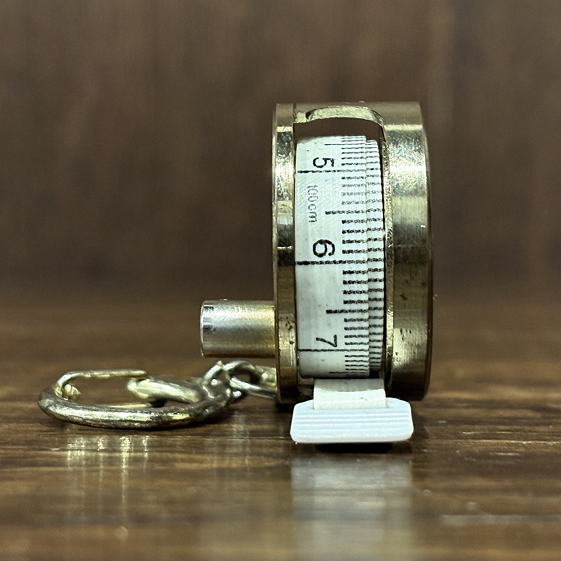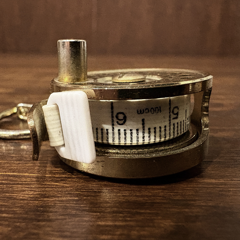 本品はフライリールスタイルのスプール直径が3cmほどの小さなメジャーツール、テープ仕様で100cm測ることが可能なスケールとなっています。