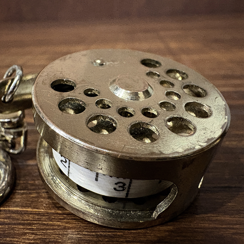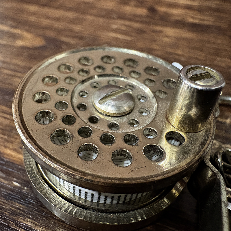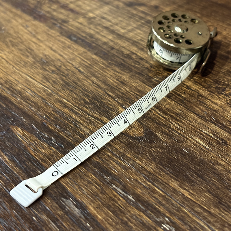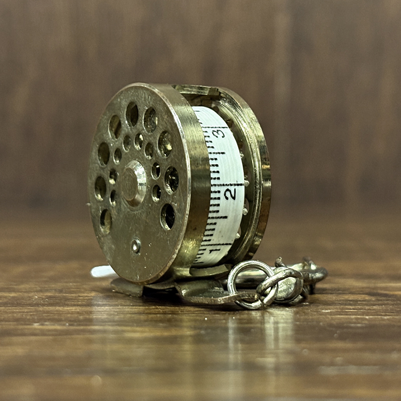 小さく可愛らしいフライリール型のオールドスケールメジャー、メタルボディが大変堅牢なつくりで楽しい小道具です、フライはもちろん、ルアー、あらゆるフィッシングシーンに、是非ご検討ください。