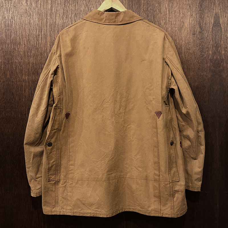 当時のハンティングディテールとして、バックには大きなゲームポケットが配され大容量の収納性もあるつくりにより、アウトドアでも多様な使い方ができる一着となっています。