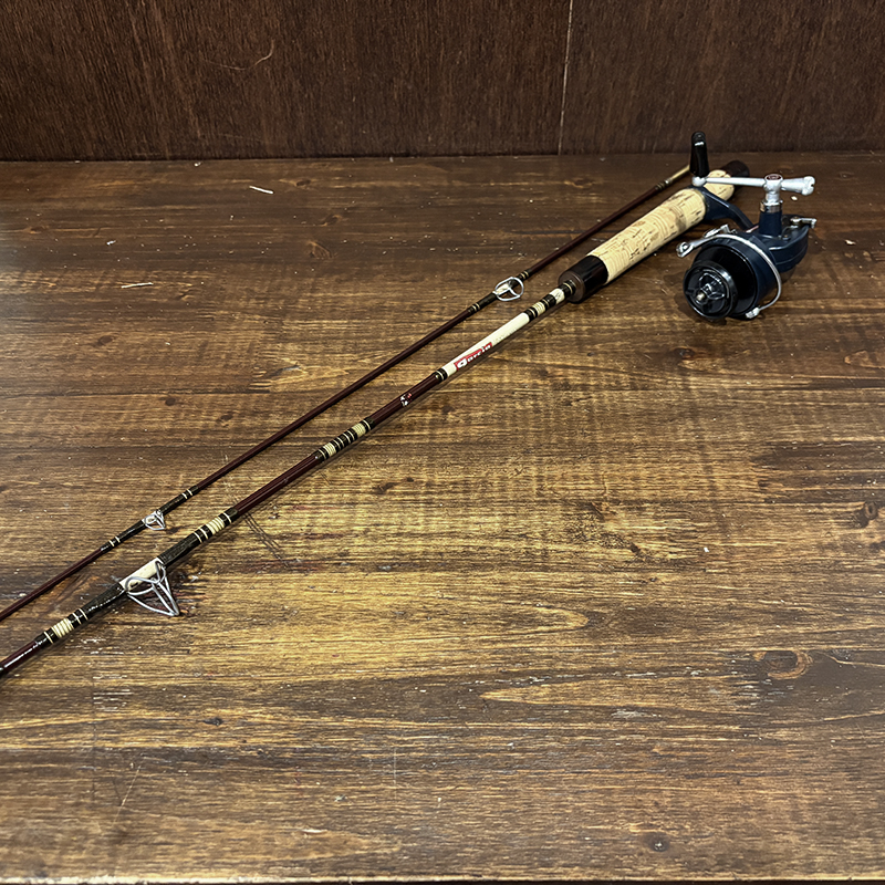 本品はガルシアオリジナルブランドとしてリリースされたコノロングラスのグラスファイバーロッド、中でもこのフォークドフットリールのみをセットする2in1仕様の専用ロッドはガルシアのクラフトマンシップが光る名作ロッドセットとしてミッチェルフォークドフットも合わせて今でも高い評価がなされています。