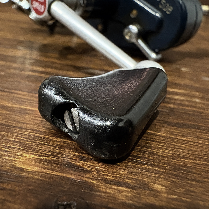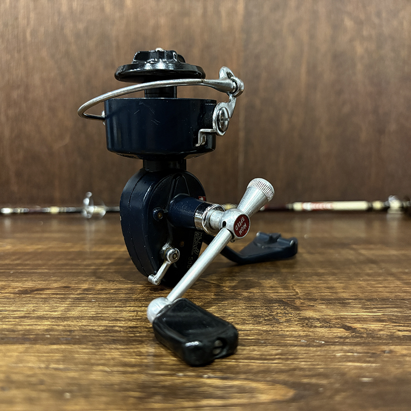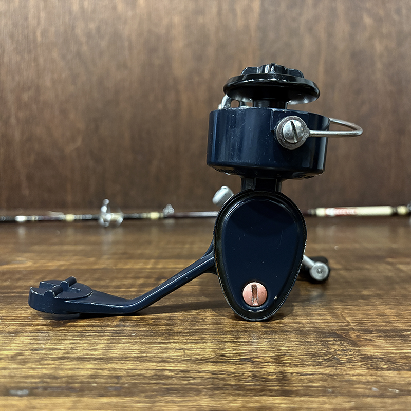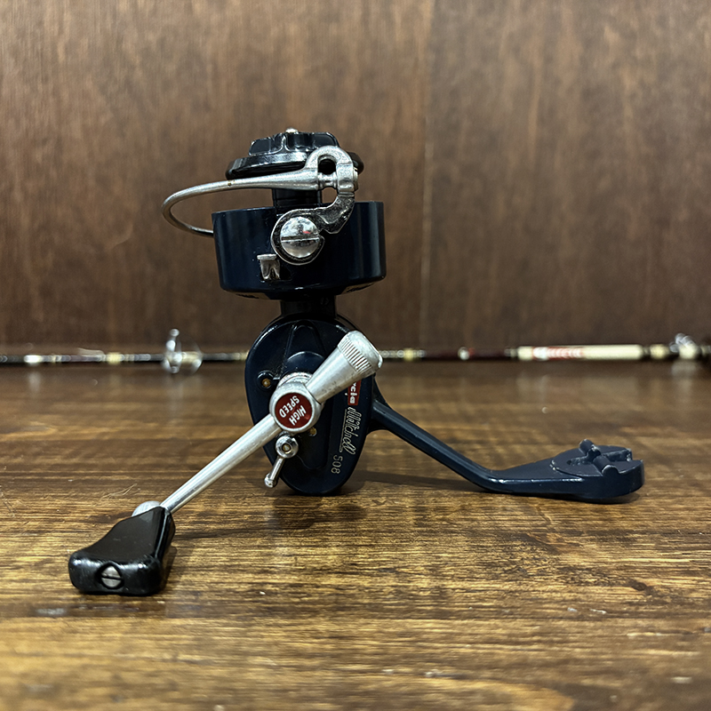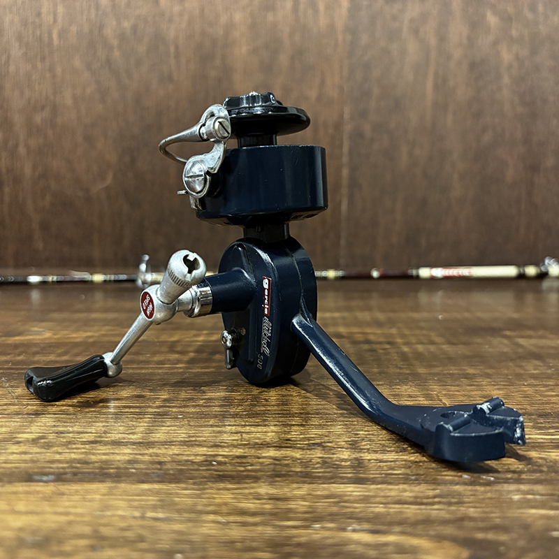 リールはフランスタックルメーカーで知られるMitchell社が手がけたフォークドフットモデルの最小番手の508、ガルシアとミッチェルが連携して設計がなされた特殊なフット形状を持ち、このオフセットしたグリップとの装着位置によりハンドリングはリールフットを指で挟む事無く握る事ができる画期的な仕様となっています。