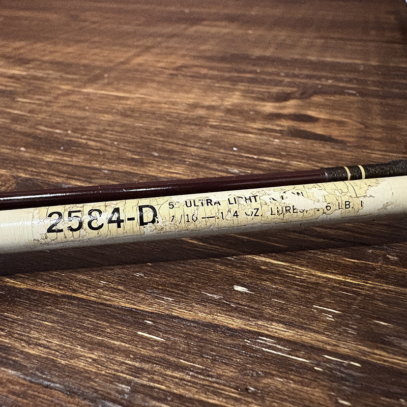 スペックはGarcia Conolon 2584が5フィートのウルトラライトアクション、スペック表記もかすかに確認でき、ルアーで1/16-1/4oz、ラインで1-6lb、リールのMitchell 508はライトアクション用の最小番手のマッチしたスペックとなっています。