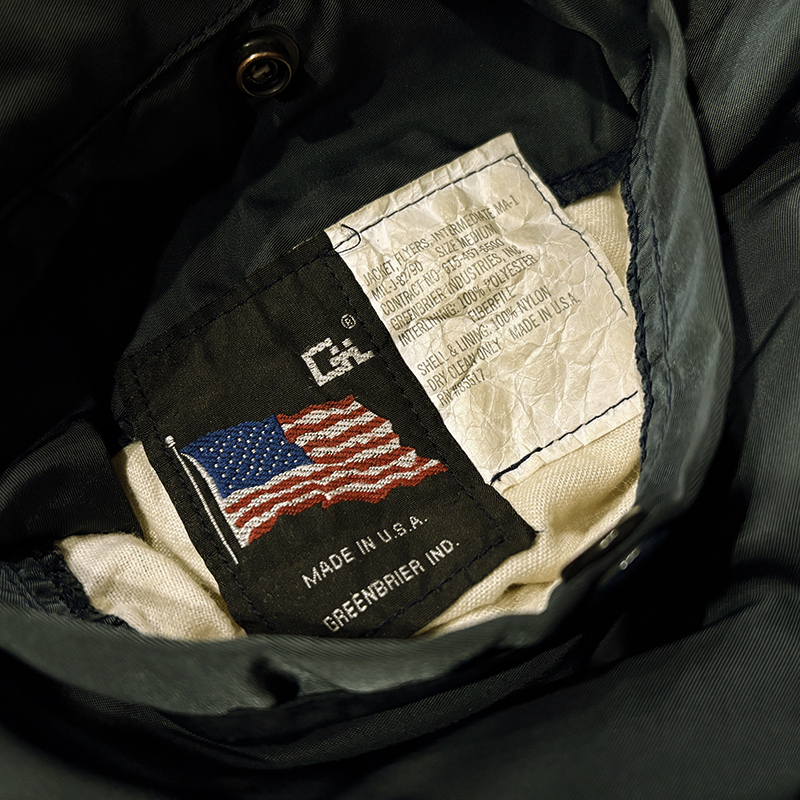 グリーンブライヤー インダストリーズは米国のテネシー州ノックスビルで生産を行なっていたとされるミリタリーサプライメーカー、コントラクターとしてもN-3Bやフライトスーツなど多くのミリタリーウエアを軍に納入する実績を持っており、後年はPXや民間向けのMA-1などのインターミディエイトフライトジャケットを中心に展開しました。