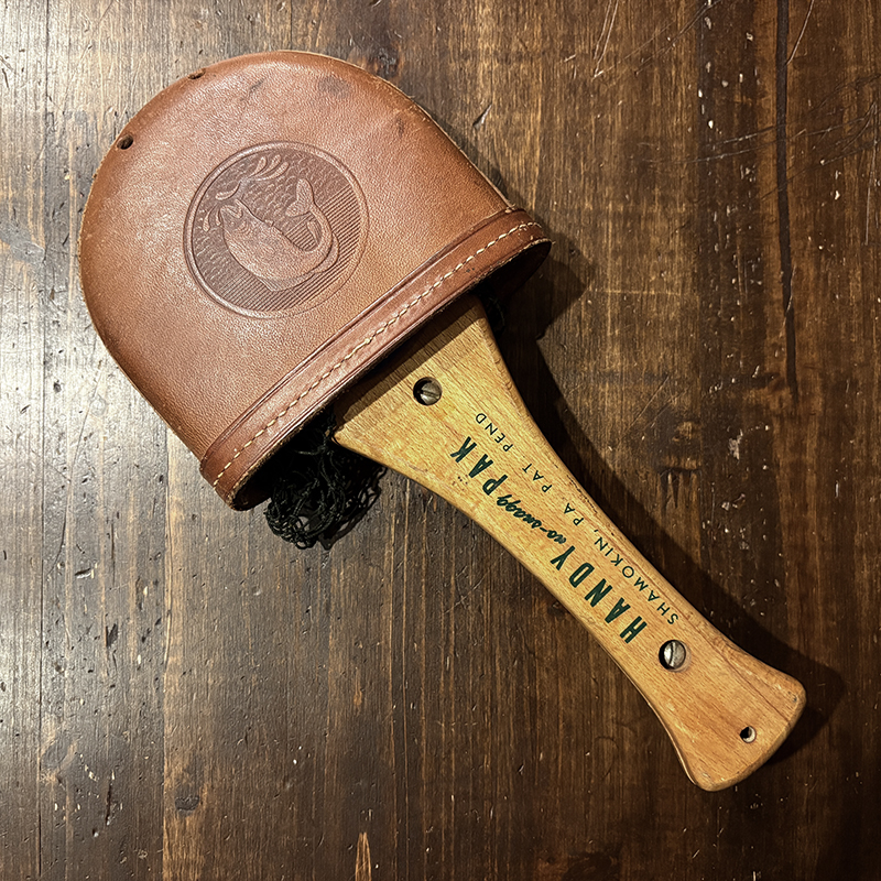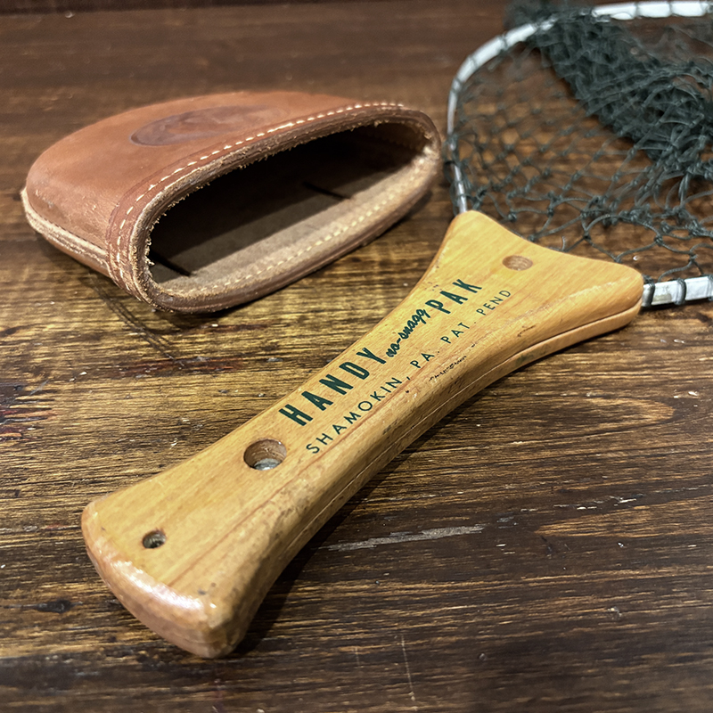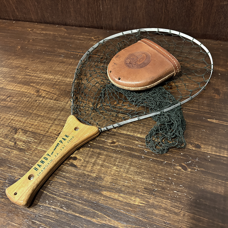 初期のレタリングデザインはじめハンドルウッドの良材によるオールドらしいディテールが良い初期Handy Pakランディングネット、現代の物とは全く雰囲気も異なったビンテージネットです、レザーケースも非常に良好な状態を維持した貴重なピースです、トラウト、バス、サーモン等あらゆるオールドフィッシングに、是非ご検討ください。
