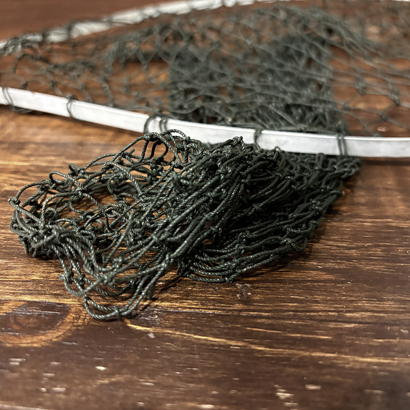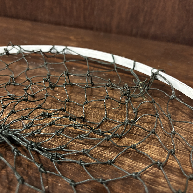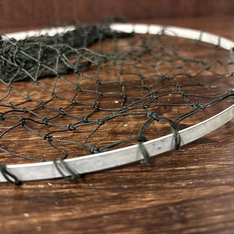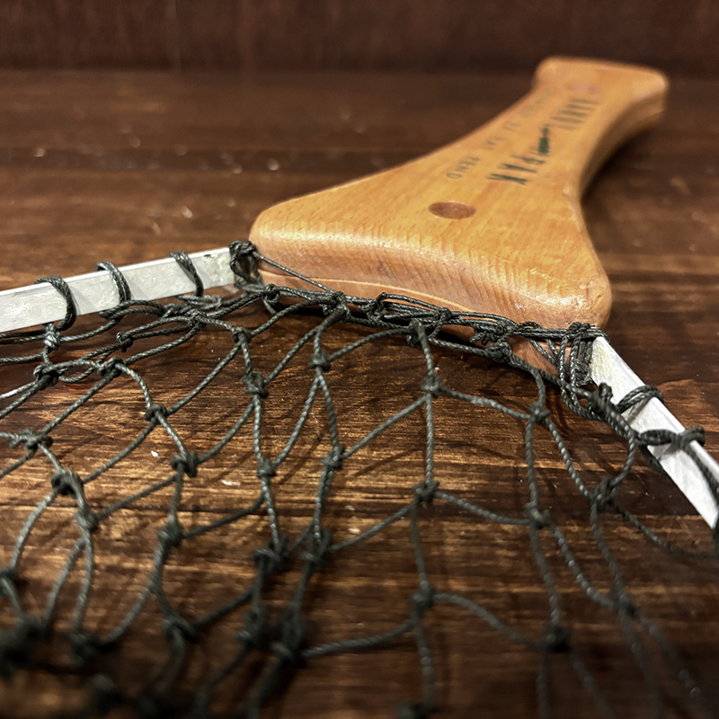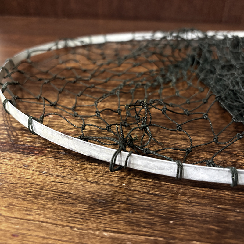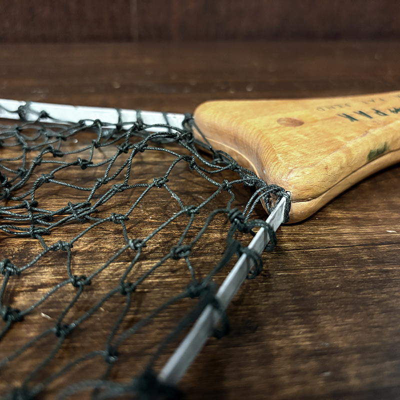 本品は現在の資本移動以前のシャモーキンに拠点があった時代のオリジナルビンテージハンディパックネット、持ち手には当時のロゴレタリングがなされており、細かな造りやハンドルの木材の質、ドーム型のマイナスネジつかい等、当時特有のディテールがそのまま残されたオリジナルビンテージネットとなっています。