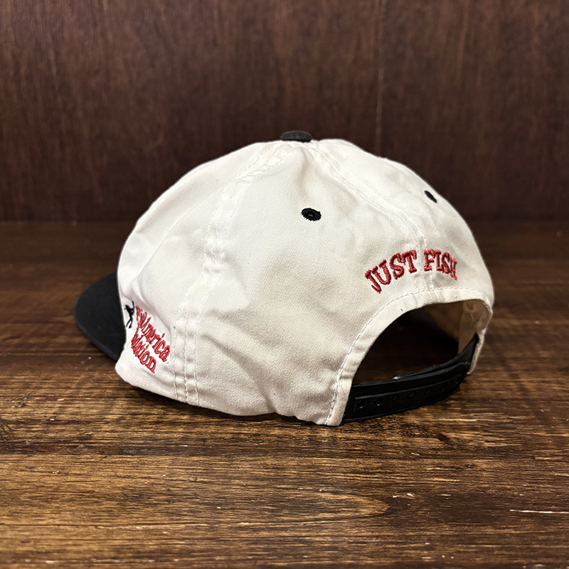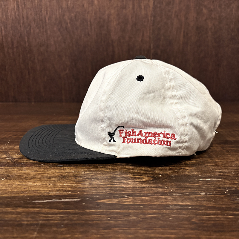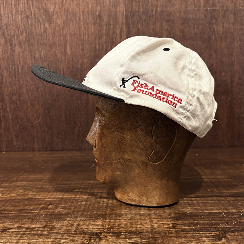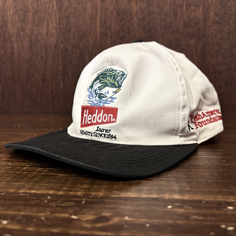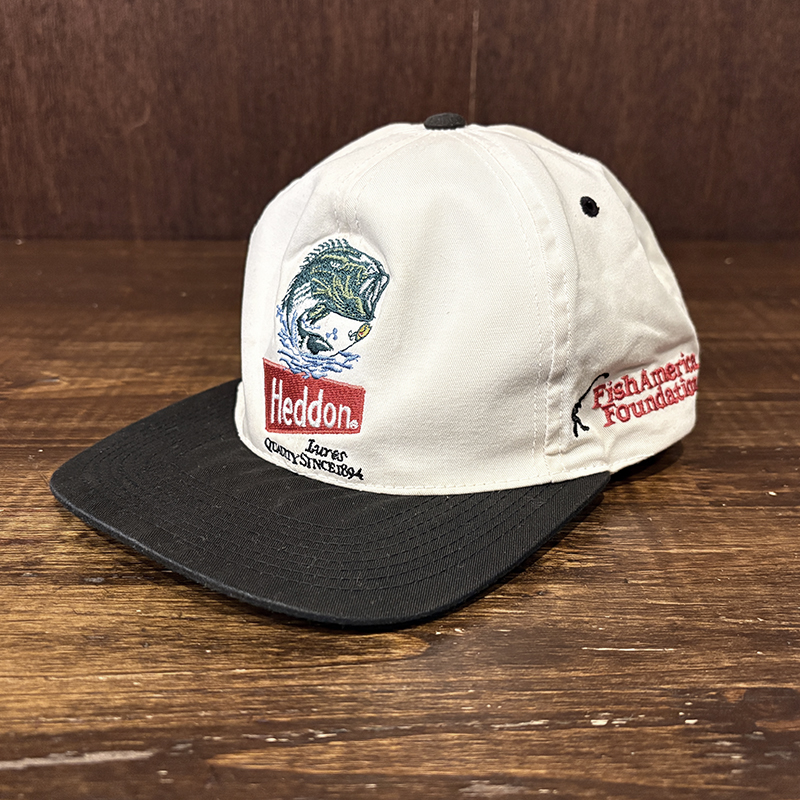 本品は Heddonのアイコニックなジャンピングバスとレッドフラッグのロゴが映えるスポーツキャップ、クラウンサイドには北米におけるスポーツフィッシングを支援する非営利団体であるFish America Foundationのクレジットロゴ刺繍が併記されており、当時のイベントなどで提供されたキャップと推察できる一品です。