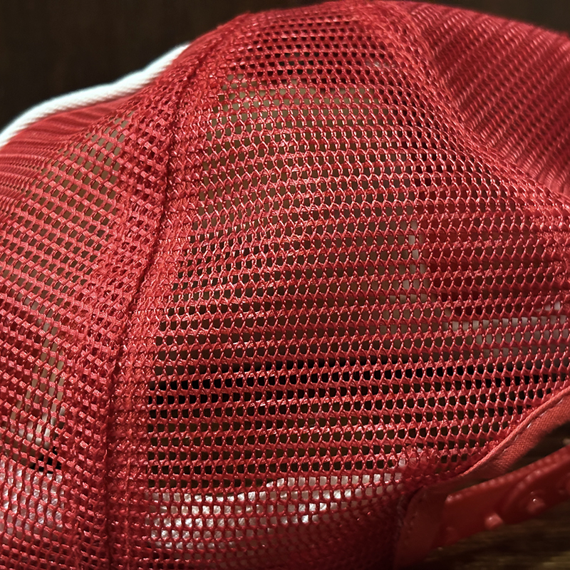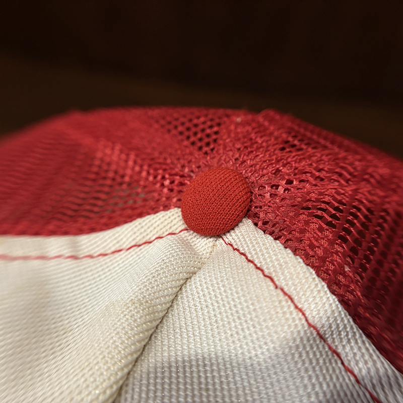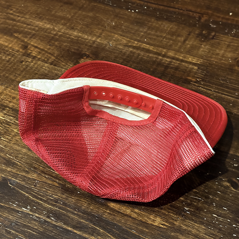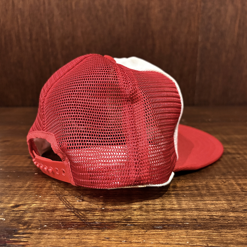 生地はポリエステル化繊ベースとナイロンメッシュ仕様でツバにはしっかりとした芯が入っており、後頭部はスナップバック仕様で幅広くサイズ調整が可能な当時スペックらしいフィッシングスポーツキャップとなっています。