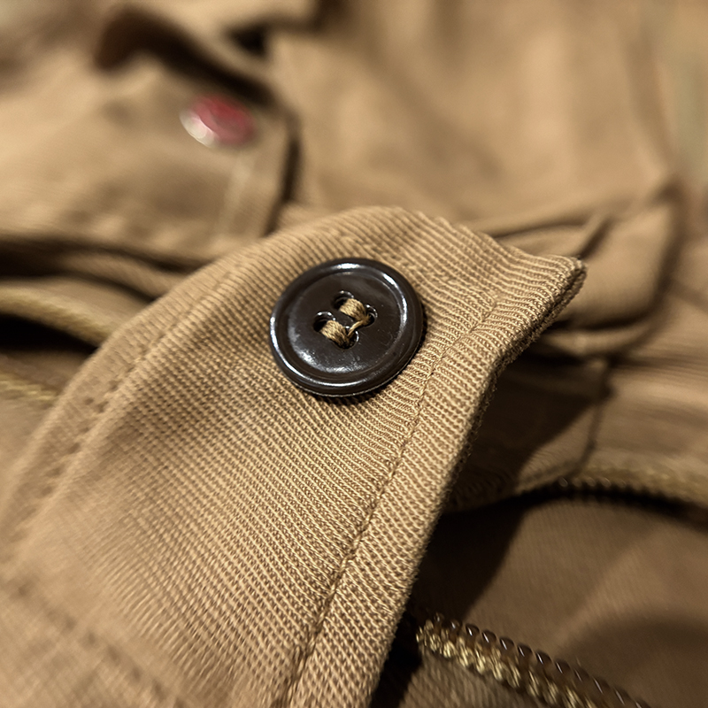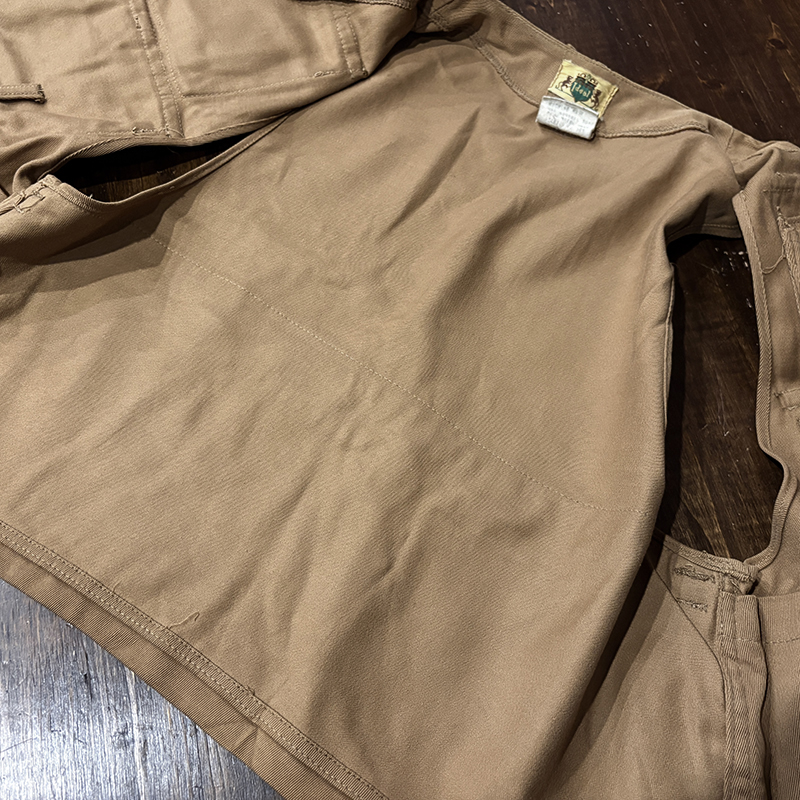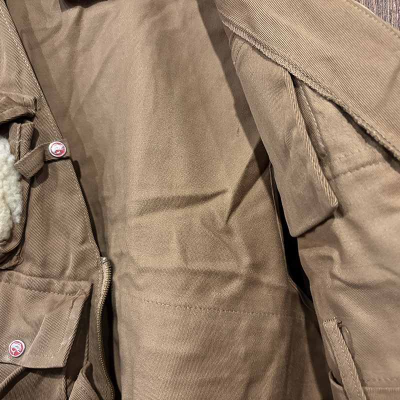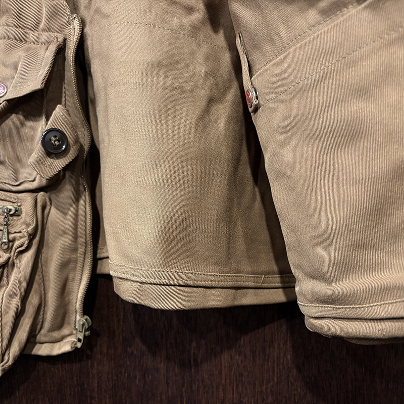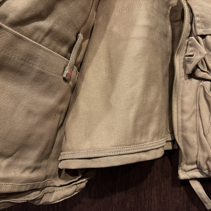 状態は経年の軽度な使用と主に保管による生地の微細なしわやくすみ、部分的な汚れが少々ありますが、画像のように使用感は非常に浅く、コットンツイル生地もしっかりと肉厚で良好、各部のホックボタンはじめジッパー、ポケット周りも極めて良好とミントコンディションの一着です。