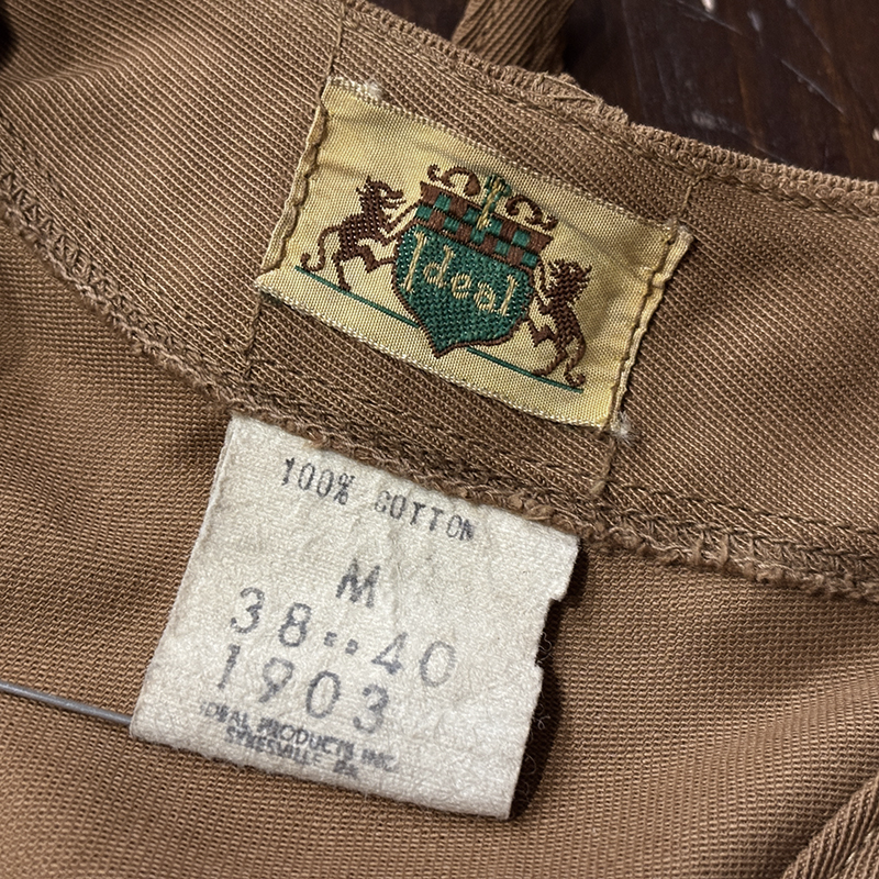 タグはIdealの旧クレストタグ、ボタンクラウンはレッドペイントの魚レリーフがデザインされており、同社特有と言える当時のビンテージディティールで