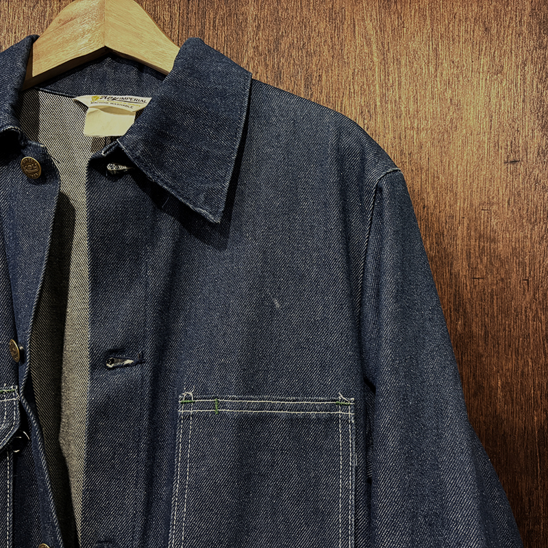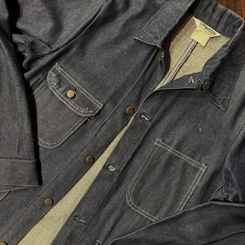 Key Industries Imperial Rigid Denim Coverall Chore Jacket No Liner Model Mint キー インダストリーズ インペリアル リジッド デニム カバーオール チョアジャケット ライナー無しモデル ラージサイズ ビンテージ ミントコンディション のご紹介です。