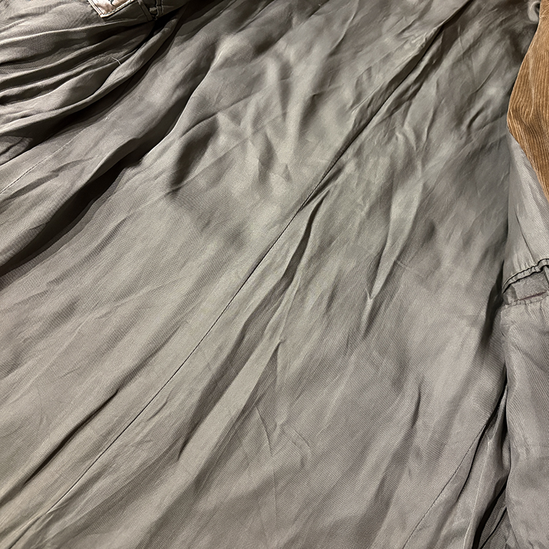 状態は経年の使用と保管によるコーデュロイ生地表面やエッジの軽度な擦れはじめ細かな皺、微細な汚れ、レザーボタン表面の傷や擦れこそみられますが、画像のように消耗しやすい襟周りや袖先も大変良好な状態で着用感も少なく、欠損しやすいクルミボタンもしっかりと残っており、タグ周りやポケットなどの細部のディテールも良好なトータルとしてもグッドコンディションを維持した一着となっています。