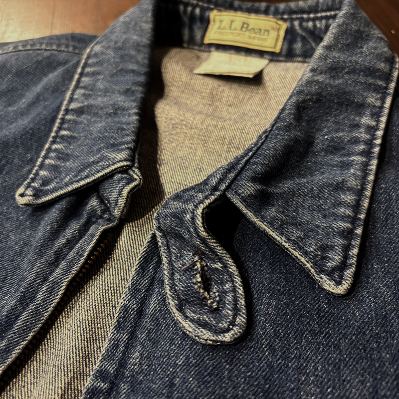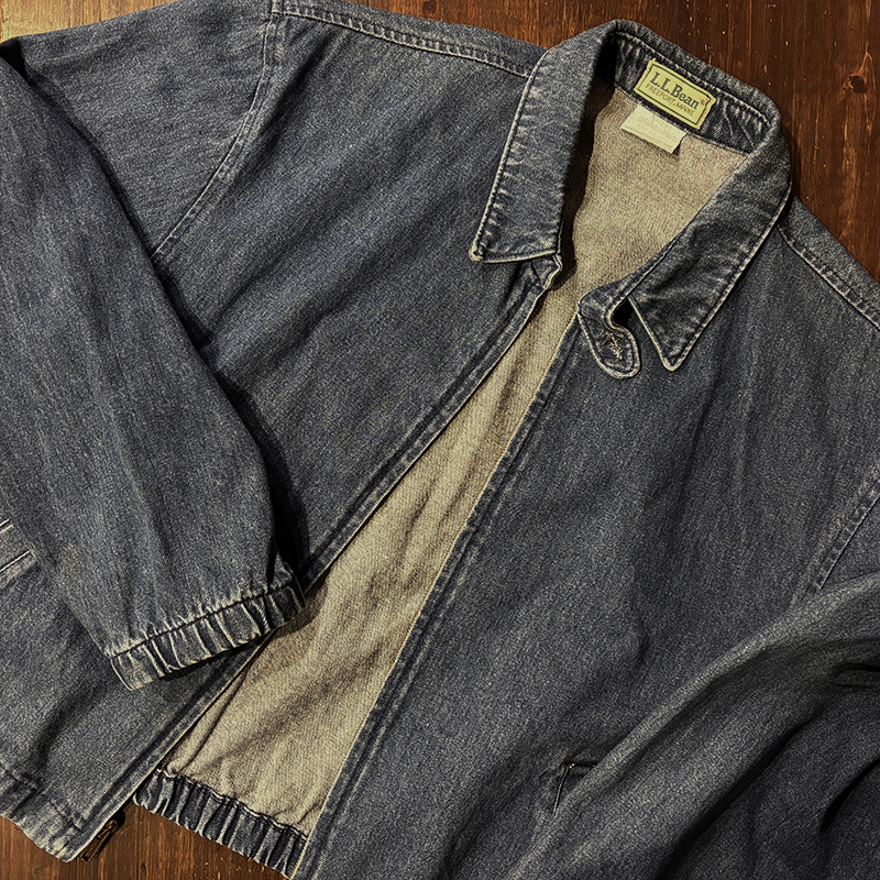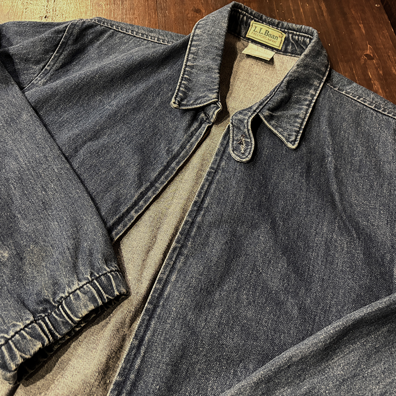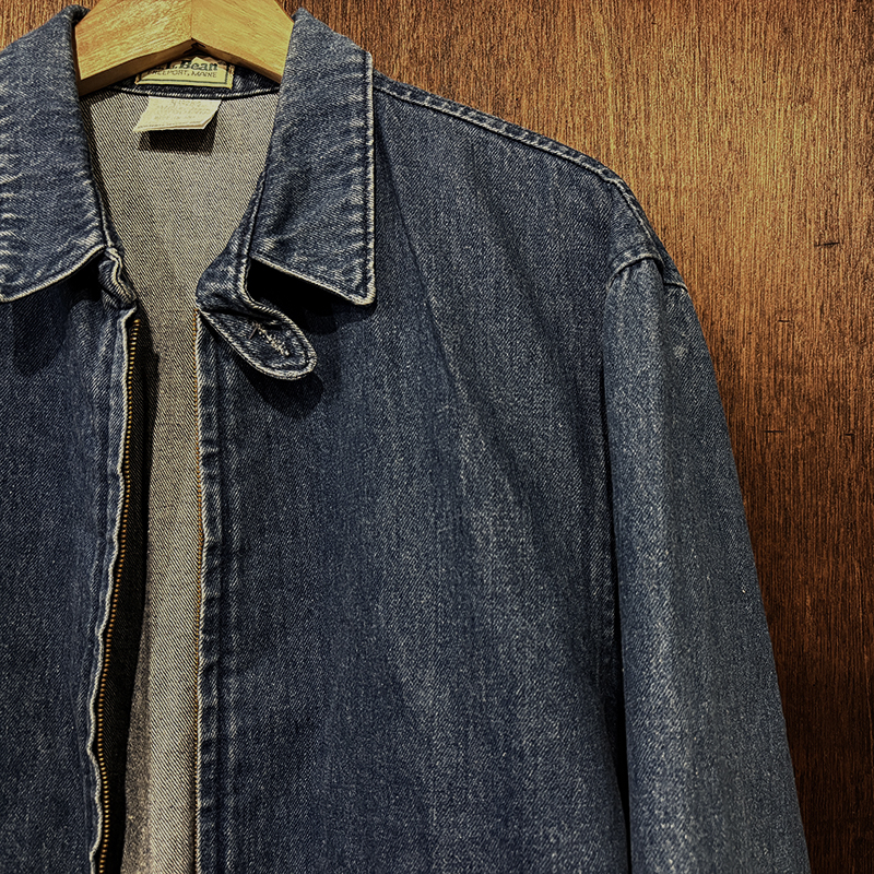 エルエルビーンの80sデニムドリズラージャケット、程よくデニムフェードしたエイジング具合が良い雰囲気の一着、ショートレングスで身幅もしっかりとある幅広いスタイルの方にマッチするシルエットです、ビーンジャケットでも数少ない希少なデニムブルゾン、アウトドアはじめタウンなどの日常のあらゆるスタイルに、是非ご検討ください。