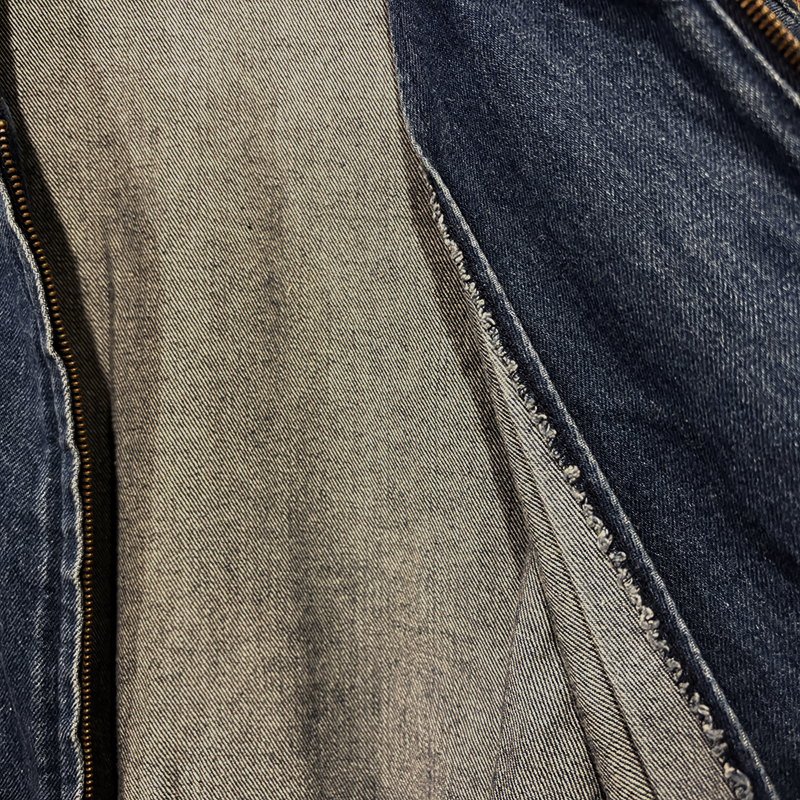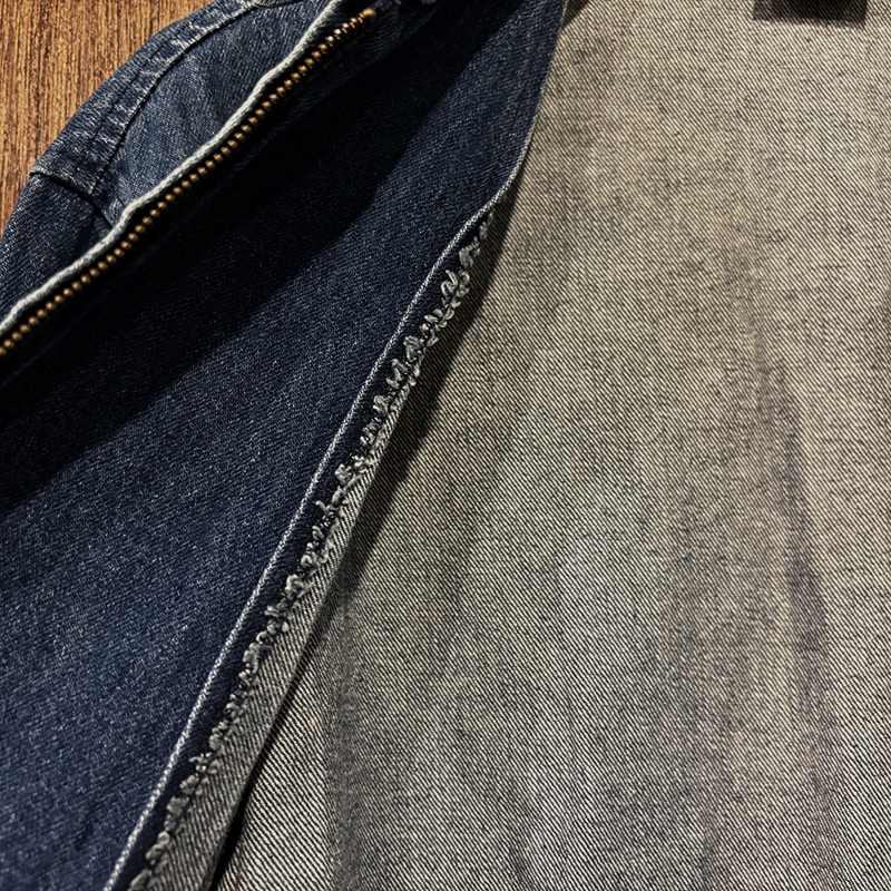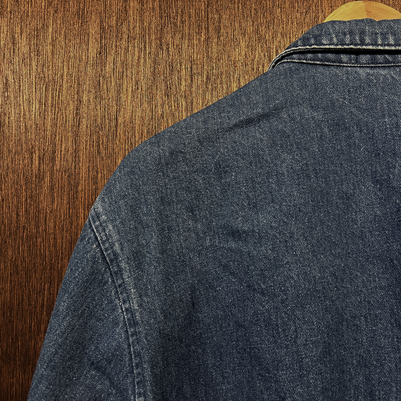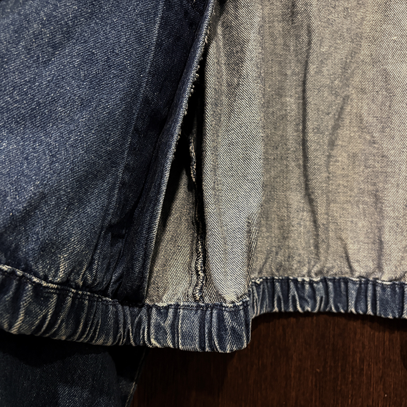 デニムはインディゴの濃淡がステッチやギャザー、エッジなどで程よくフェードしており、これから着込むうちにさらに良いデニムフェードが期待できる良い風合いの一着となっています。