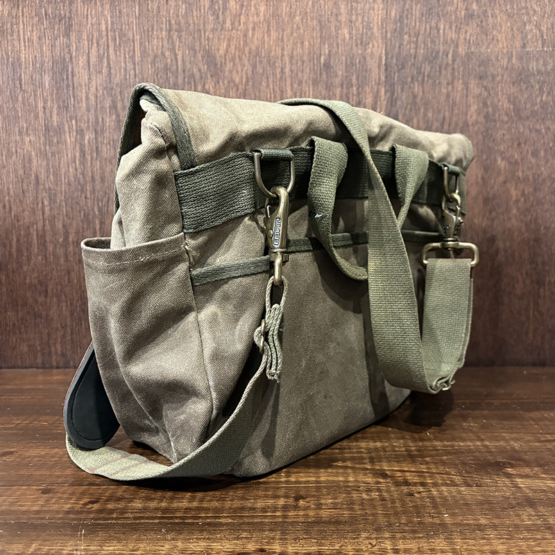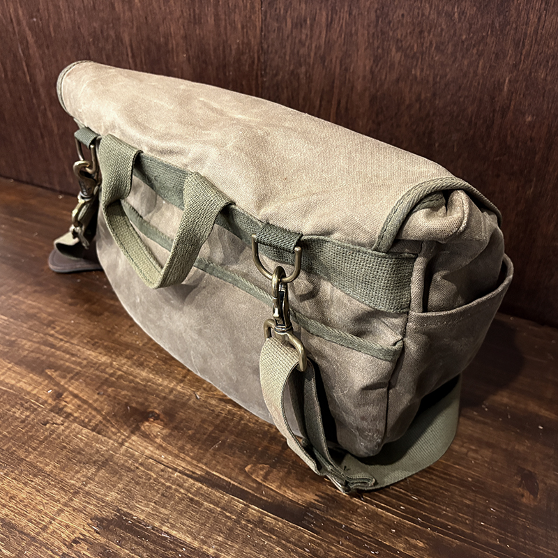 本品はエルエルビーンのクラシカルなショルダータイプのフィールドバッグで非常に肉厚且つ腰のあるヘビーリジッドキャンバス生地をベースにオイルドフィニッシュを施したとにかく堅牢な素材感のアウトドアバッグ。