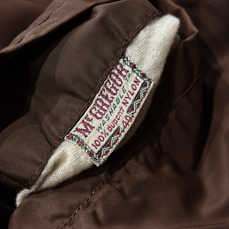 マクレガーの50s-60sビンテージオリジナル デュポンナイロンツイル アンチフリーズ リバーシブル ジャケット、マクレガーらしい素材使いや合わせやすいブラウントーンで各部のディテールはじめスタイルが非常に雰囲気の良い一着です、ドリズラーとはまた違うフライトジャケットのような印象のショートレングスのスポーツタイプ、アウトドアはじめタウンとあらゆるシーンにマッチします、是非ご検討ください。