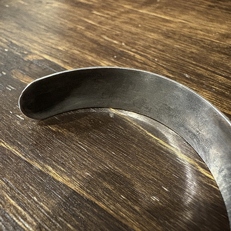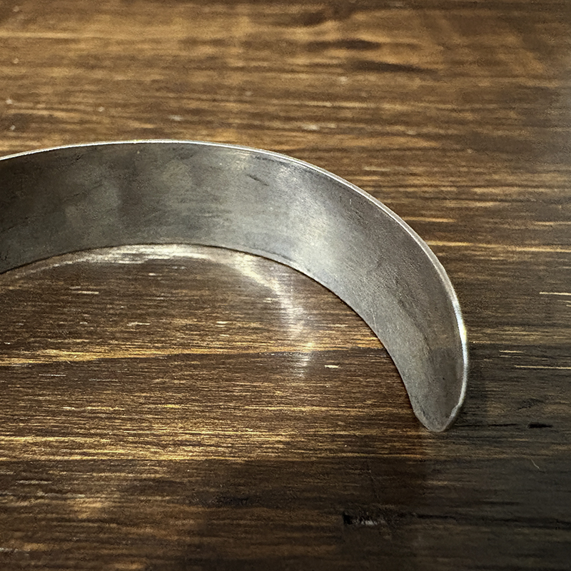地金は適度にアールを描いており、ターミナルのカーブも非常にスムーズ、また表面のモチーフや周囲の装飾の密度感とそれに伴ったシルバーの陰影が大変良くスーベニアバングルとしても大変珍しいデザインの個体となっています。