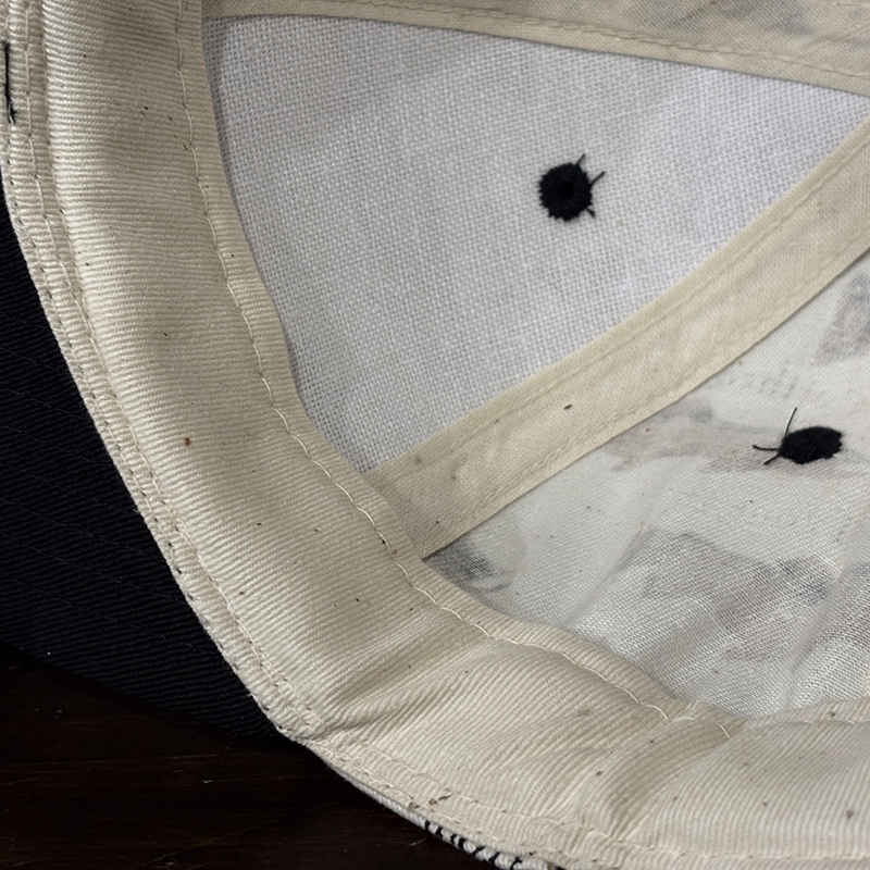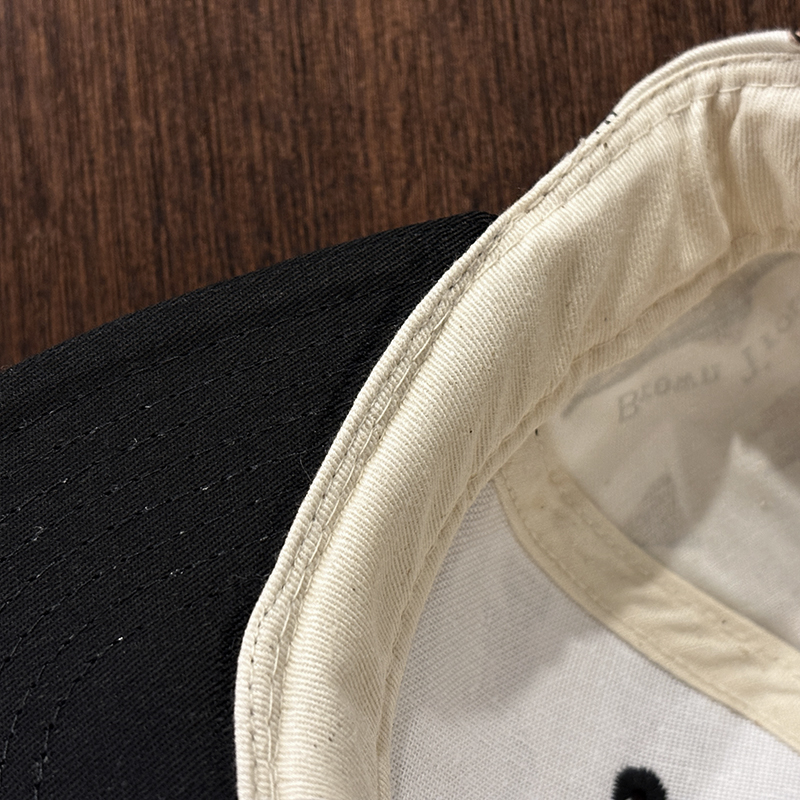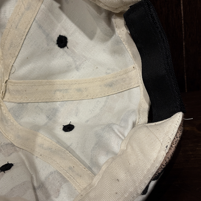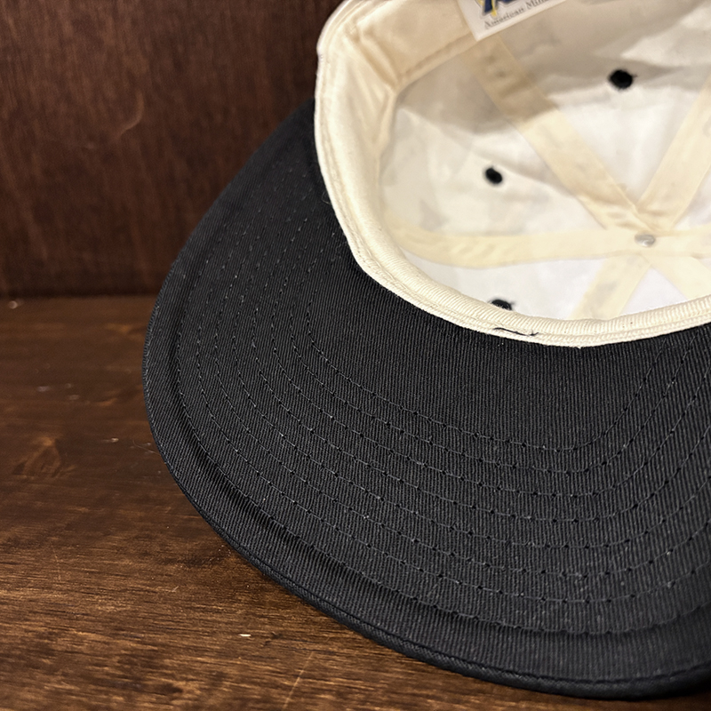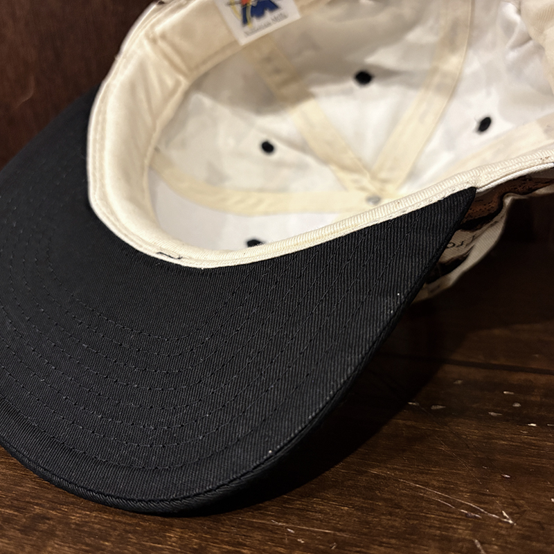 状態は経年の主に保管による生地のわずかなくすみこそありますが、画像のように生地はじめインナー側も含めてトータルでも極めてコンディションは良好で、オールドキャップとしては非常に良い保管状態のデッドストックコンディションの個体となっています。
