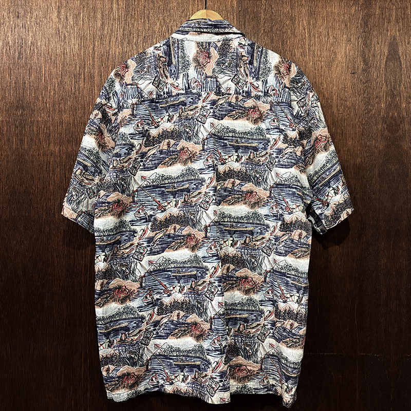 Old Fly Fly Fishing Fisherman Pattern Cotton Short Sleeve Shirts XL Made in USA Mint フライフィッシング フィッシャーマントラウト バス柄 オールド ショートスリーブ シャツ バッククロス仕様 米国製 ミントコンディション のご紹介です。
