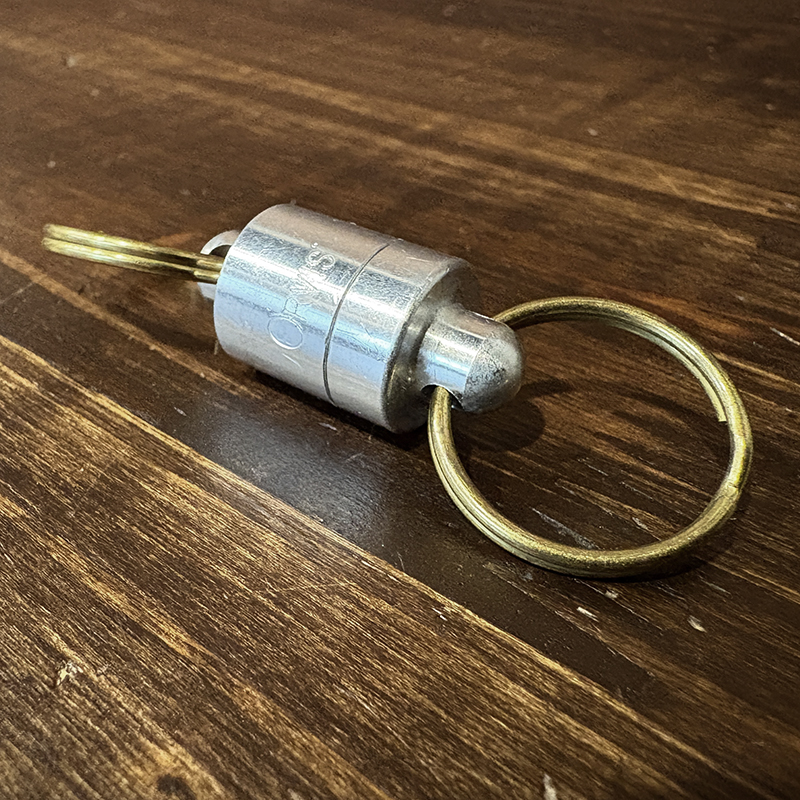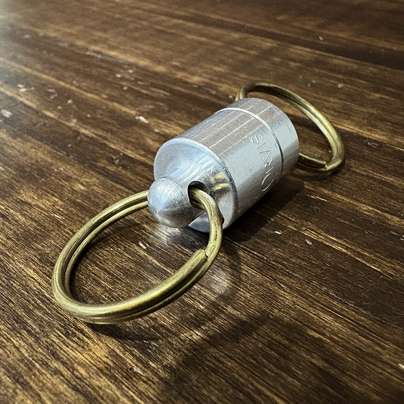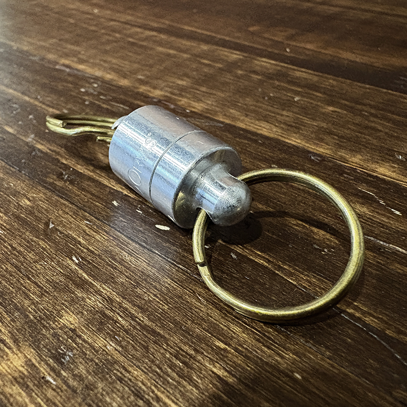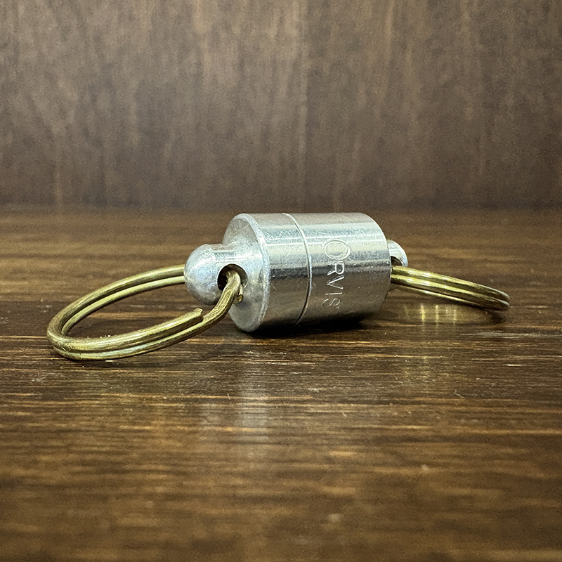 Orvisのアルミニウムベースマグネット型ランディングネットリリーサー、オールドタイプのロゴエングレーブが雰囲気良く、なによりコンパクトでアルミベース故軽量で堅牢なリリーサーです、オールドスタイルのフィッシングネットに、是非ご検討ください。
