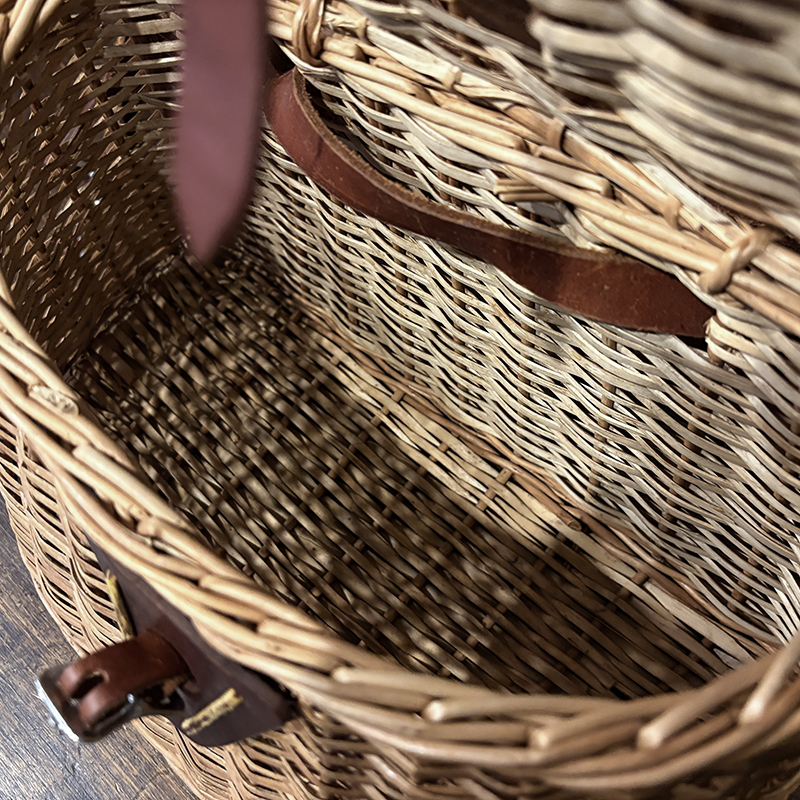 本品のクリールは国内では洋魚籠などと呼ばれ、天日にて干されることでしっかりと乾燥された柳によって、ひとつひとつ職人の手編みによって丁寧に制作された当時特有のクラシックなフィッシング用の魚をキープするフィッシュストッカー。