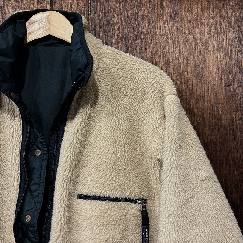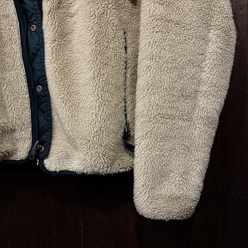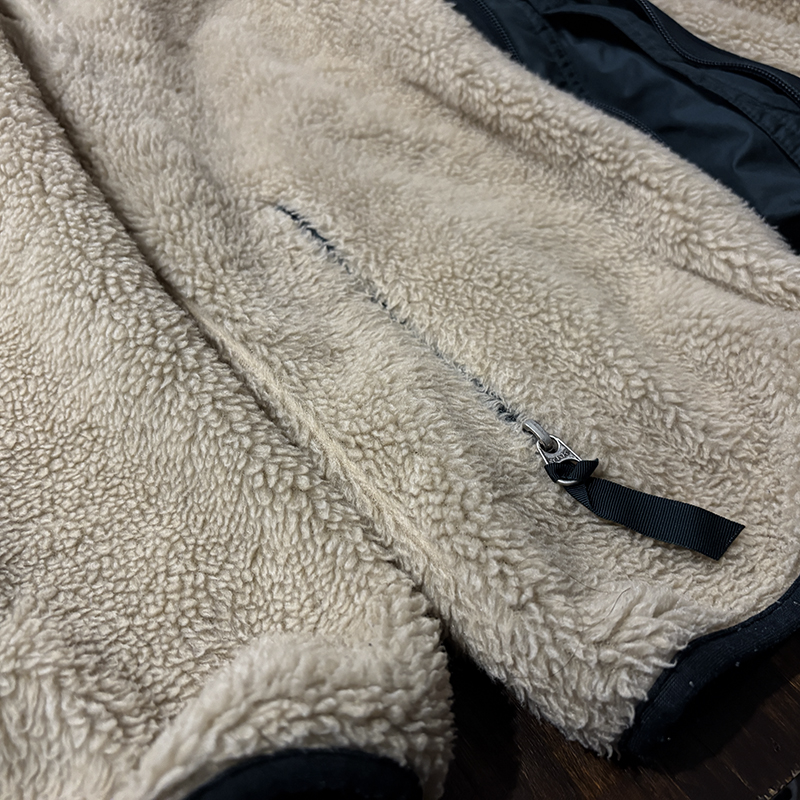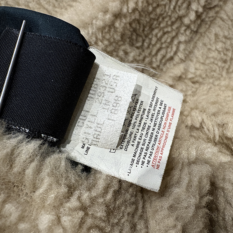 フィッツロイタグはリバーシブルのため、シェル側はフロント中段身頃に、パイル側はチェストジッパーポケット引き手に配され、タグなどもチェストポケット内に配されており、FA98とあるため98年秋冬ラインナップの最終期モデルであることが解ります。