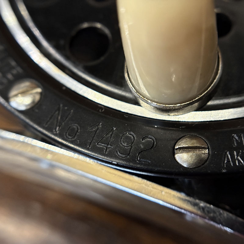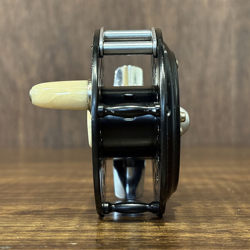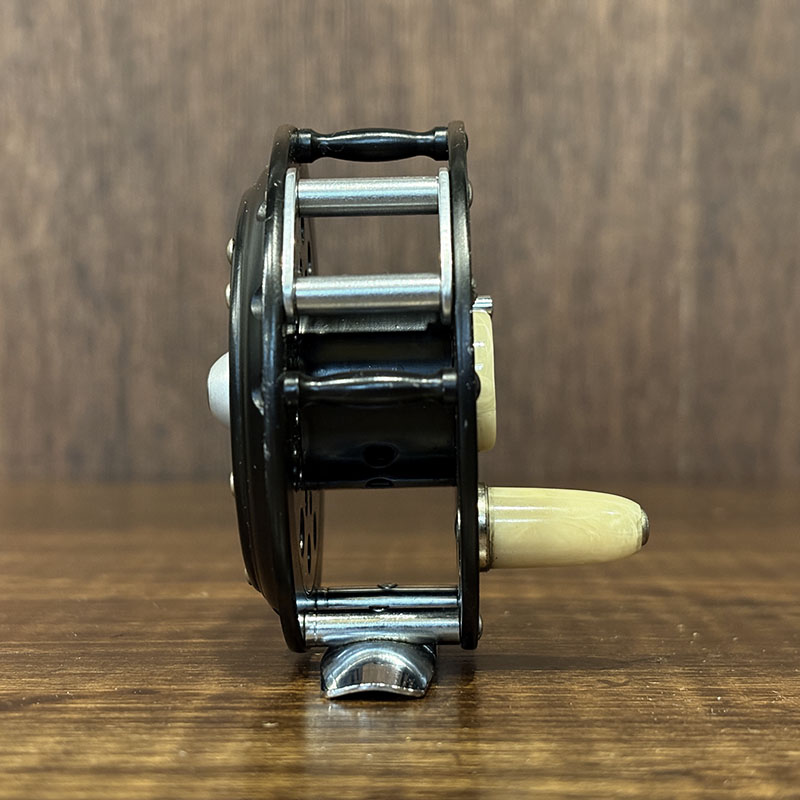 1492はラインガードが装備されていることで、右手巻き専用のモデルとなっており、小さなボディにマーブルアイボリーのハンドルノブとラッチカバーが備わった、ビンテージフライリールです。