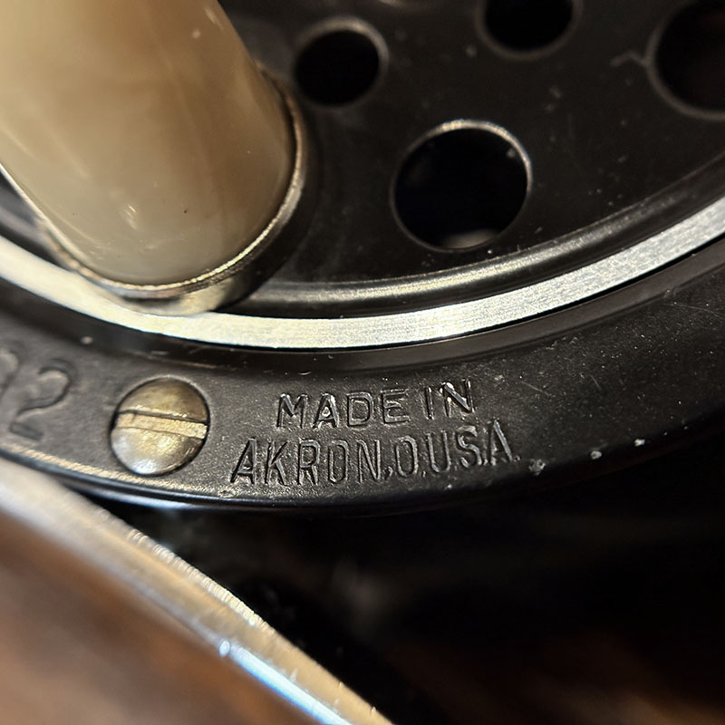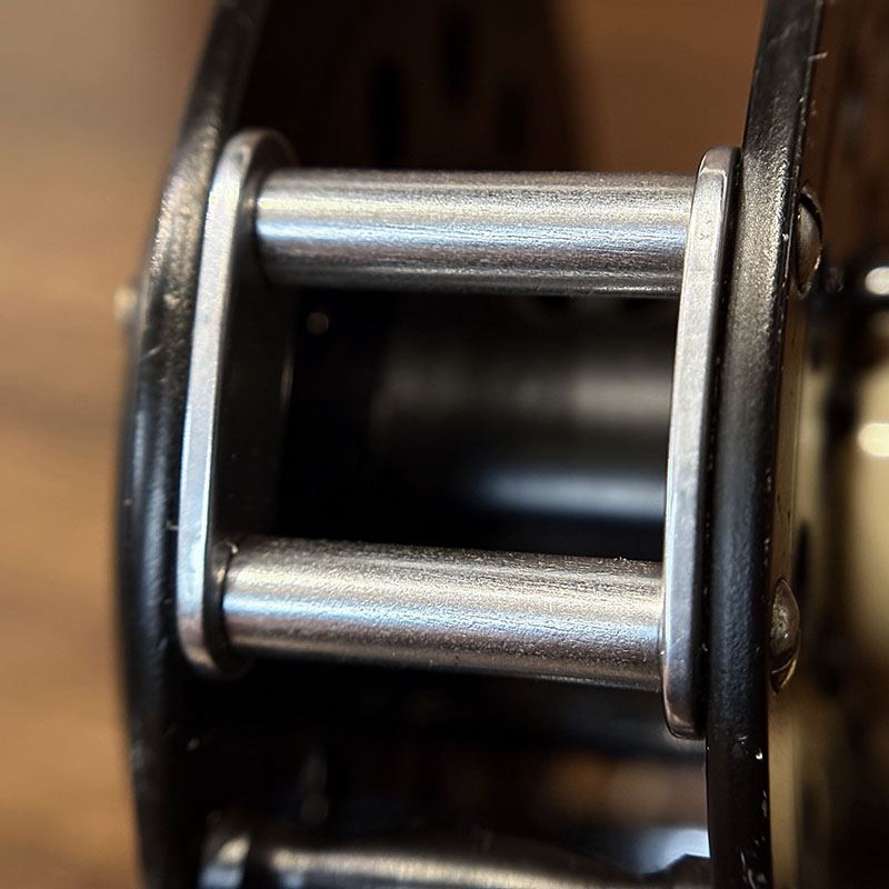 状態はリール本体においては本体エッジの微細な擦れや傷こそわずかに見られますが、画像からも確認いただけるようにリール本体の塗装も非常にクリーンで滑らかな状態を維持しており、スプール側のシルクラインなどの巻き跡などもでているものがほとんどですが、非常に綺麗な塗装状態で、傷みやすいラッチやハンドルノブ、フットのメッキも極めて良好なトータルでも限りなくミントに近いグッドコンディションの一台です。