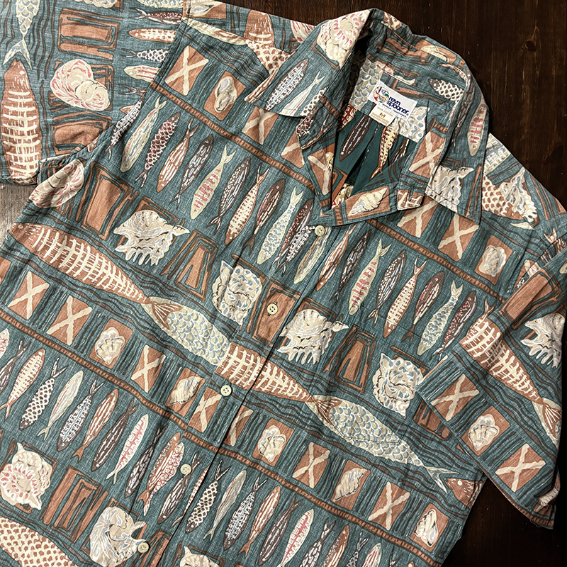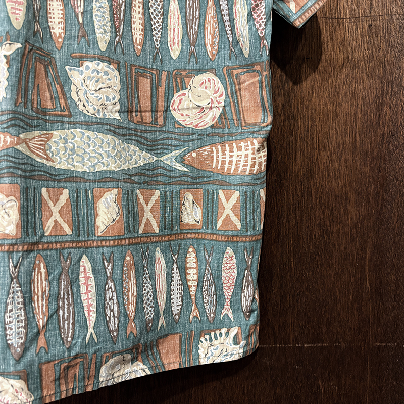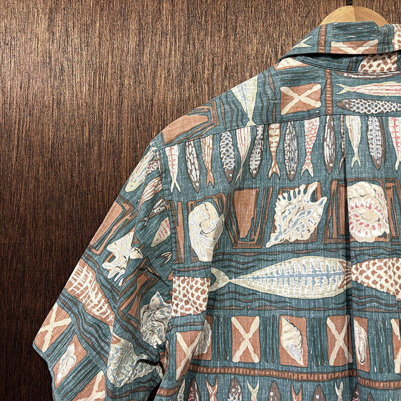 Reyn Spooner Cotton Aloha Short Sleeve Shirts Fish Shell Frame Pattern M Mint レインスプーナー コットン アロハシャツ ハワイアンシャツ 魚 貝 フレーム柄 パターン ミントコンディション のご紹介です。