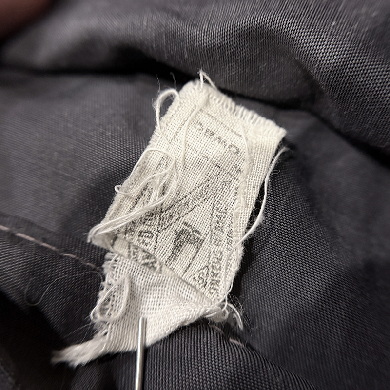 レーヨン生地は木材パルプに含まれるセルロースを主成分とした再生繊維としてシルク素材に代わって当時その非常に滑らかでとりわけ瀞みのある質感が人気を博したマテリアル、本品のカラーは当時としては希少な大変シックなダークチャコールのようなブラックがフェードしたような印象のカラーとなっており、その素材感から光沢感もあるため独特の表情を見せるダークトーンとなっています。