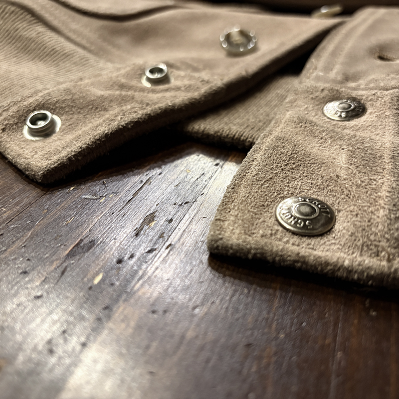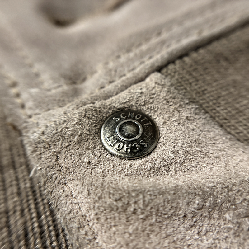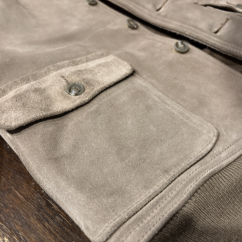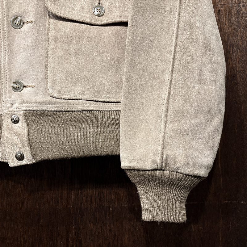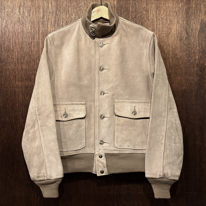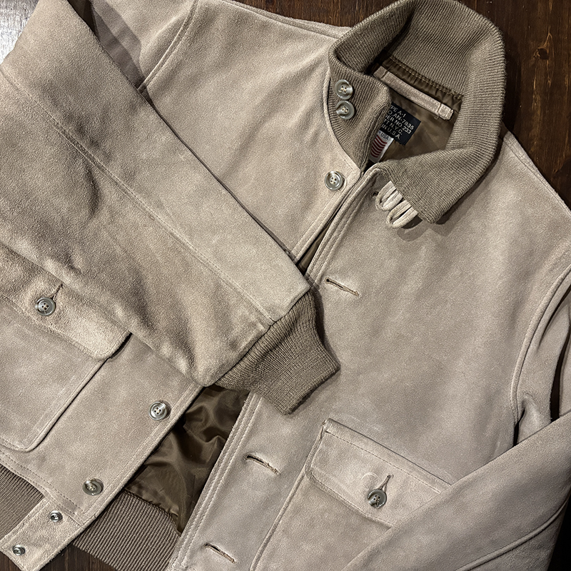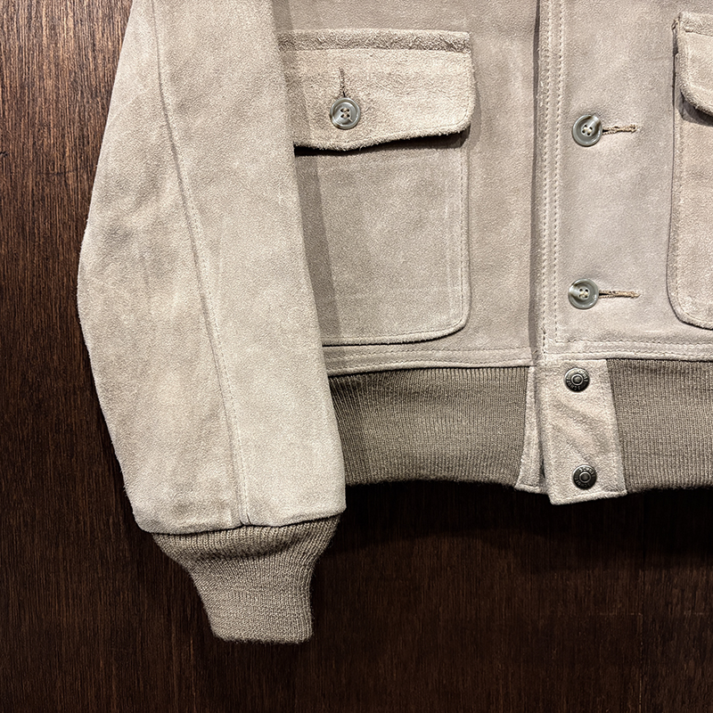 ショット社らしい大変肉厚のスエードレザーを使用し、パターンも当時のA-1をしっかりと踏襲しつつ、縫製やリブなどは大変丈夫な作りが見られる現代でも扱いやすい仕上がりの一着です。